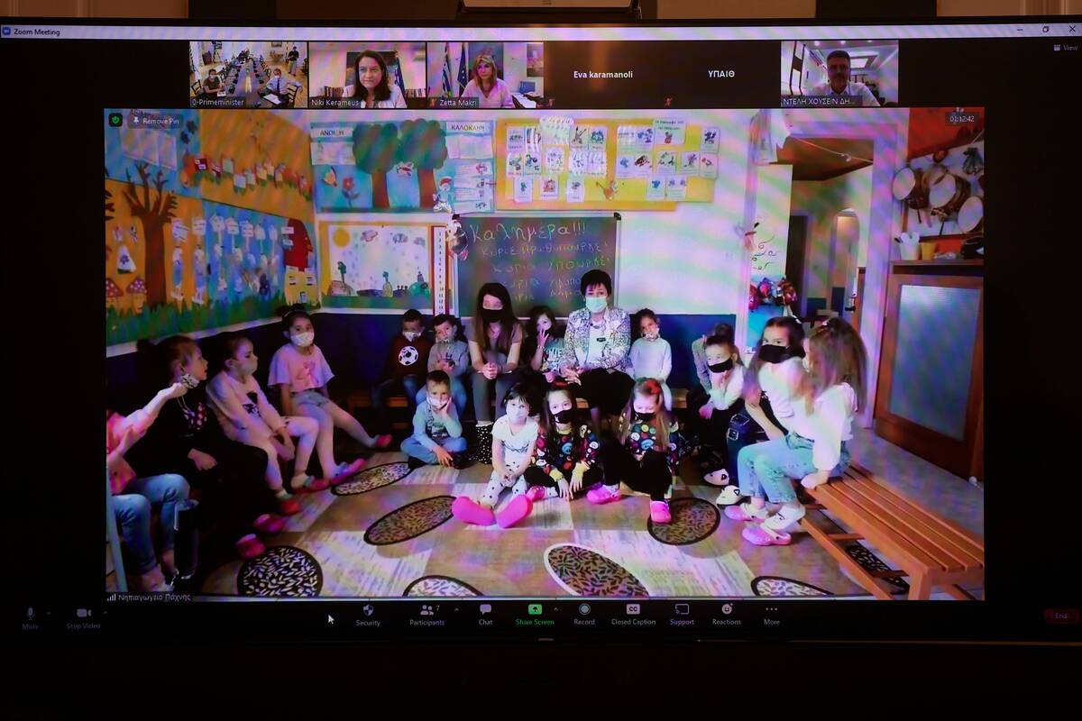 Με τους 17 μικρούς μαθητές του Νηπιαγωγείου Πάχνης, που βρίσκεται στην περιοχή της Ξάνθης, είχε την ευκαιρία να συνομιλήσει το πρωί ο Πρωθυπουργός Κυριάκος Μητσοτάκης.