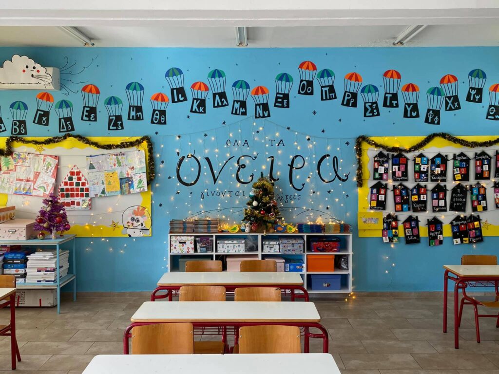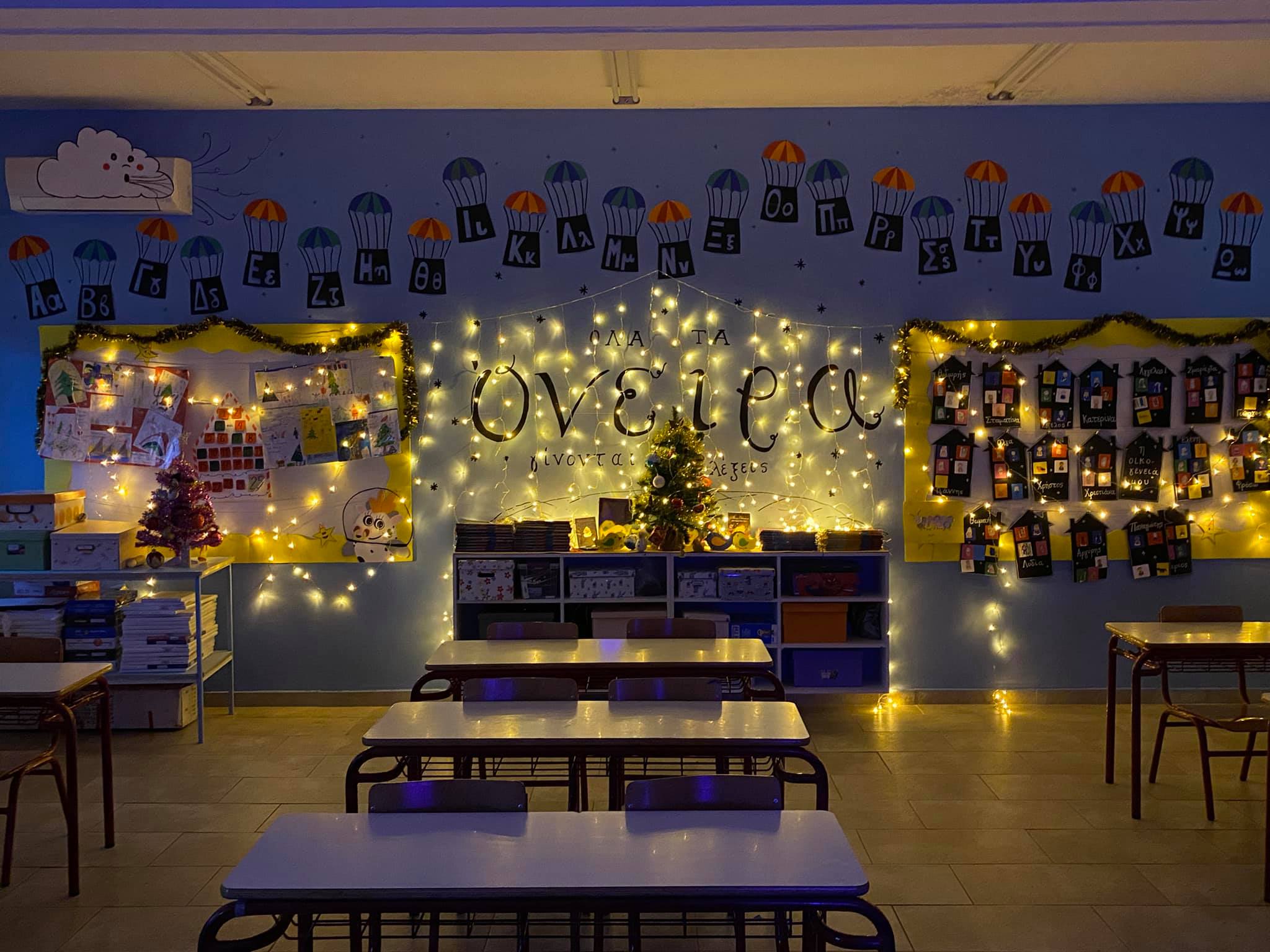 Τι καλύτερο να μπουν οι μικροί μαθητές του σχολείου στην αίθουσά τους που θα είναι στολισμένη με όμορφα χριστουγεννιάτικα στολίδια αφού φέτος οι μαθητές δεν χάρηκαν να την διακοσμήσουν οι ίδιοι αφού τα μαθήματα συνεχίζονταν μέσω τηλεκπαίδευσης;