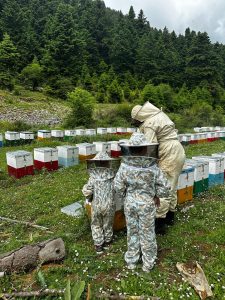 «Τον Νικόλα μου τον έπαιρνε μαζί του ο σύζυγός μου από την ηλικία των τεσσάρων ετών, μέχρι που κάποια στιγμή έμαθε πάρα πολύ καλά την διαδικασία! Και οι δύο, μαζί με τον μικρό, γνωρίζουν τον γόνο, τη γύρη, γνωρίζουν εάν έχει γεννήσει η μέλισσα και αναγνωριζούν πολύ καλά τη βασίλισσα. Η κάθε κυψέλη έχει τη δική της βασίλισσα ! Ανάμεσα σε εκατομμύρια μέλισσες την εντοπίζουν! Και αυτό είναι και θέμα αντίληψης! Εννοείται ότι οι μέλισσες τους τσιμπάνε πολλές φορές αλλά είναι και οι δύο ατρόμητοι!» μας λέει η Κατερίνα!