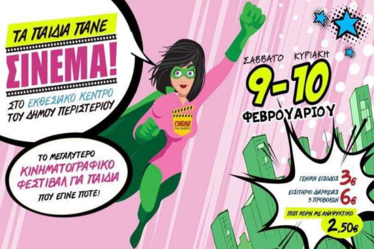 Το φεστιβάλ κινηματογράφου, “Τα παιδιά πάνε σινεμά”, επιστρέφει το Σάββατο 9 Φεβρουαρίου και Κυριακή 10 Φεβρουαρίου και δημιουργεί 3 μεγάλες αίθουσες κινηματογράφου στο Εκθεσιακό Κέντρο του Δήμου Περιστερίου και προβάλλει 30 διαφορετικές ταινίες μεταγλωττισμένες.