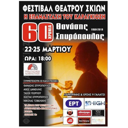 Το Πανευρωπαϊκό Σωματείο θεάτρου σκιών και ο Πολιτιστικός & Αθλητικός Οργανισμός του Δήμου Γαλατσίου, διοργανώνουν το 1ο φεστιβάλ Θεάτρου Σκιών προς τιμήν του τελευταίου, μεγάλου, καραγκιοζοπαίχτη Θανάση Σπυρόπουλου για τα 60 χρόνια προσφοράς του στο θέατρο σκιών, όπου θα πραγματοποιηθεί στο θεατράκι του στο Γαλάτσι!