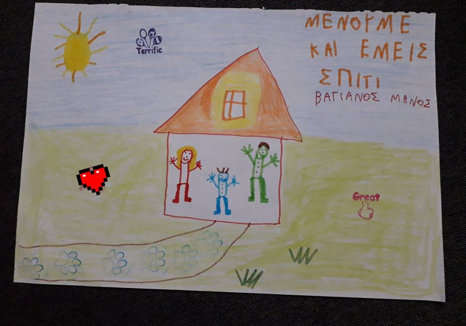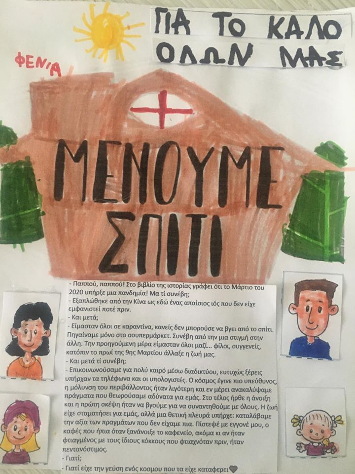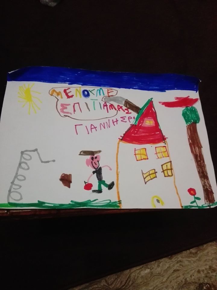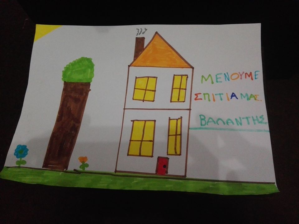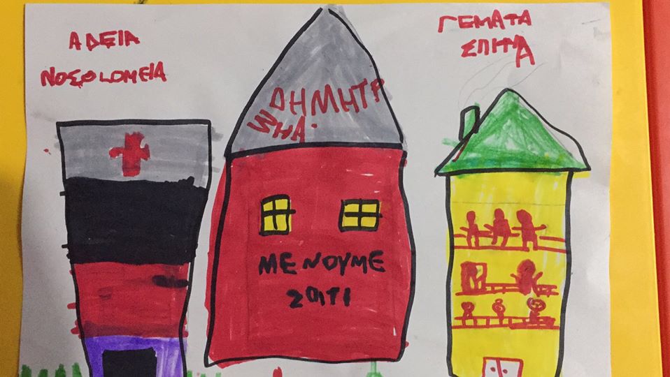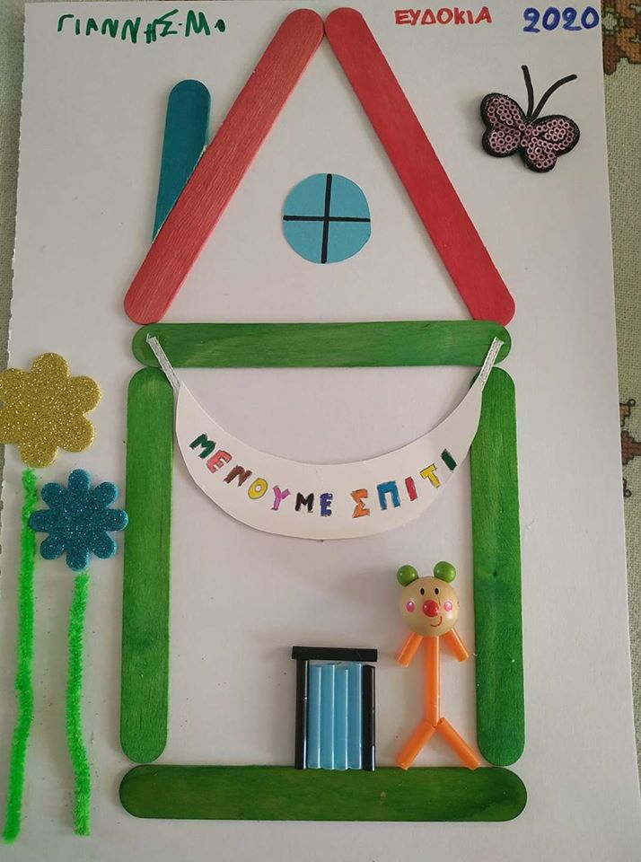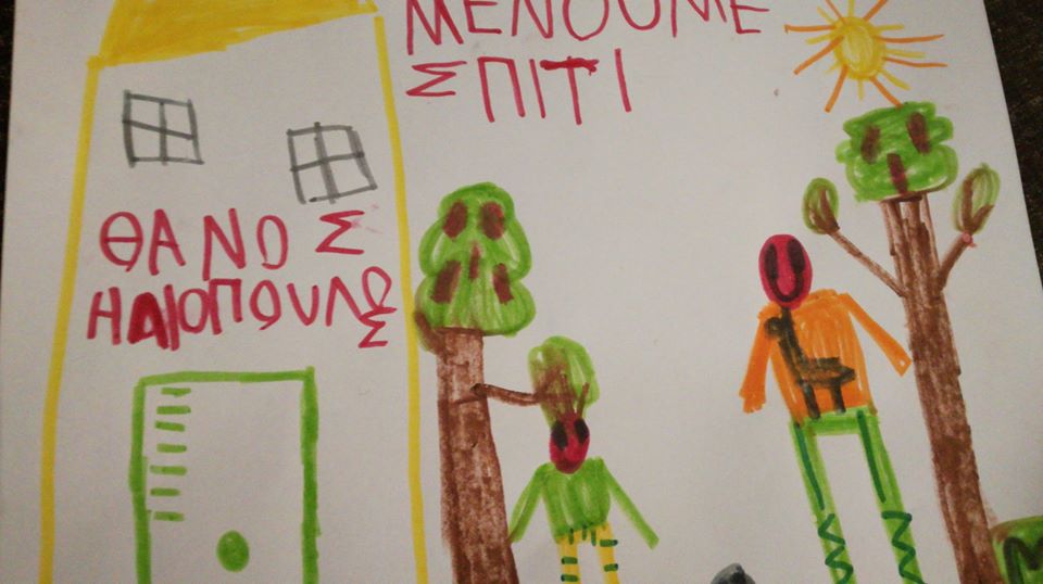 Ξεχωρίσαμε τη ζωγραφιά του μικρού Δημήτρη που γράφει χαρακτηριστικά στην δημιουργία του (η πρώτη φωτό του άρθρου) #ΜένουμεΣπίτι, άδεια νοσοκομεία, γεμάτα σπίτια.