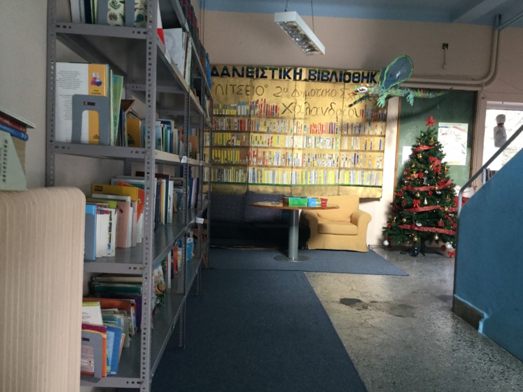 Στο εν λόγω σχολείο, λοιπόν, λειτουργεί μία ανοικτή βιβλιοθήκη, χωρίς πόρτες στην είσοδο του κτιρίου, όπου οι μαθητές έχουν καθημερινή πρόσβαση και μπορούν να έρχονται άμεσα σε επαφή με τα βιβλία. «Τα παιδιά οικειοποιήθηκαν αμέσως το άμεσα προσβάσιμο χώρο και μ’ αυτόν τον τρόπο έμαθαν να διαβάζουν όχι μόνο τις ώρες που δανείζονται αλλά ακόμη τις βροχερές μέρες του χειμώνα, ώρες φιλαναγνωσίας και στα διαλείμματα που επιλέγουν να μείνουν με την παρέα τους μελετώντας και συζητώντας για τις ιστορίες και τα παραμύθια που κρύβουν τα βιβλία» εξηγεί η ίδια. Μάλιστα, εκεί, με πρωτοβουλία της υπεύθυνης βιβλιοθήκης, λαμβάνει χώρα και ένα σχέδιο πολλαπλών δράσεων που στοχεύει στην καλλιέργεια της αγάπης για την ανάγνωση στα παιδιά. Μία από αυτές είναι οι ομαδικές αφηγήσεις ιστοριών με ταυτόχρονη προβολή του ψηφιοποιημένου βιβλίου με προτζέκτορα, από μαθητές της Δ τάξης, στα πρωτάκια. «Οι μικροί μαθητές μας απολαμβάνουν τους μεγαλύτερους να τους διηγούνται ιστορίες, ενώ οι μεγαλύτεροι καλλιεργούν τη σκέψη και το λόγο τους μέσα από τη διήγηση και τις ερωτήσεις των παιδιών», συμπληρώνει η κ. Παπαϊωάννου.