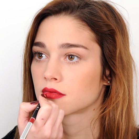 Με το μολύβι χειλιών κάνε το περίγραμμα των χειλιών σου και πέρασε το σχεδόν στη μισή επιφάνεια προς το εσωτερικό των χειλιών. Στη συνέχεια με το σκούρο κραγιόν πέρασε πάνω από το περίγραμμα, και όλο το μέρος των χειλιών που έχεις από πριν περάσει με το μολύβι. Αφήνεις απλά το εσωτερικό μέρος των χειλιών σου άβαφτο. Με το δεύτερο κραγιόν πέρασε μόνο το εωτερικό μέρος των χειλιών (το άβαφτο). Με το δάκτυλο σου ή ένα πινέλο κάνε τα απαραίτητα σβησίματα ώστε να μην ξεχωρίζουν αυστηρά τα όρια στα δύο κραγιόν.