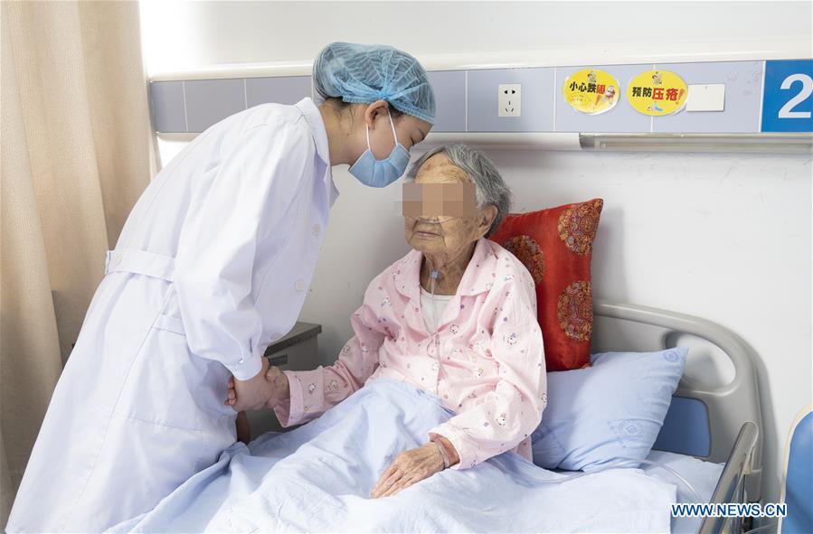 Νοσηλεύτρια σε νοσοκομείο της Κίνας φροντίζει τη γιαγιά ασθενή που κατάφερε να βγει από την καραντίνα