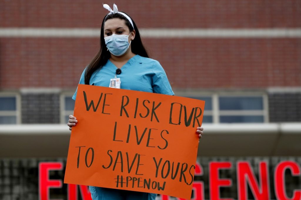 Στις αρχές της καραντίνας στη Ν. Υόρκη οι νοσηλευτές εκλιπαρούσαν τον απλό κόσμο να παραμείνει στο σπίτι… (φωτο: Kathy Willens / Associated Press)