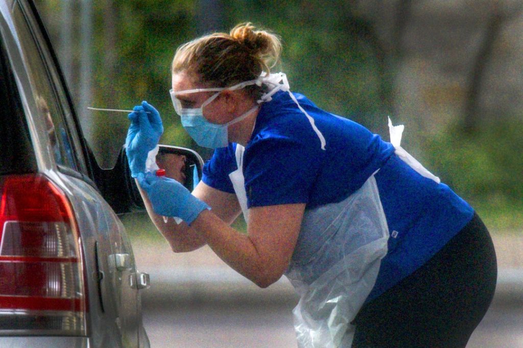 Νοσηλεύτρια πραγματοποιεί τυχαία τεστ σε περαστικούς, σε βενζινάδικο της Αγγλίας (φωτο: Peter Summers / Getty Images)