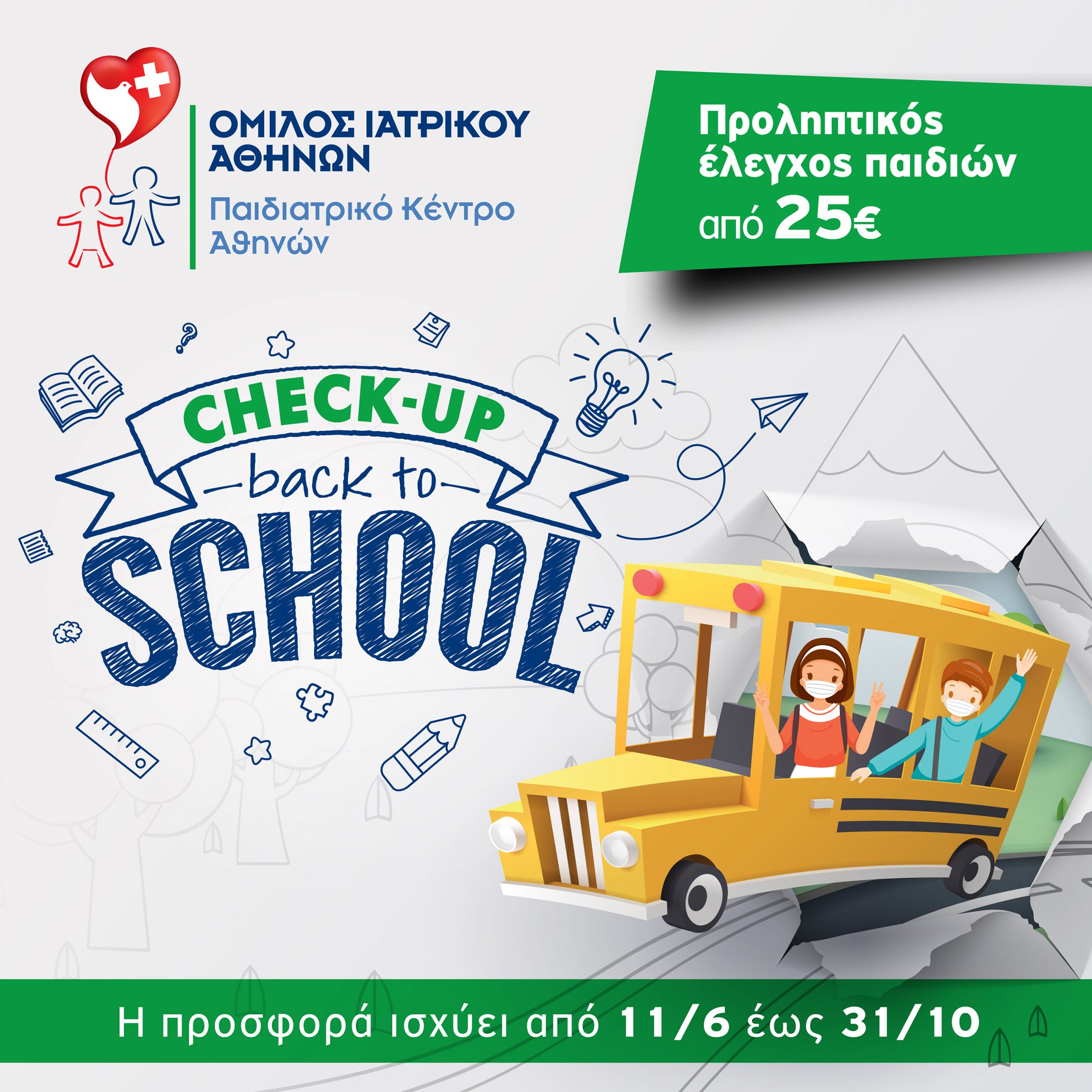 Με αφορμή την έναρξη της περιόδου των εγγραφών, για τη νέα σχολική χρονιά, το Παιδιατρικό Κέντρο Αθηνών προσφέρει ολοκληρωμένο πακέτο εξετάσεων προληπτικού ελέγχου για παιδιά σε ειδική, μειωμένη τιμή.