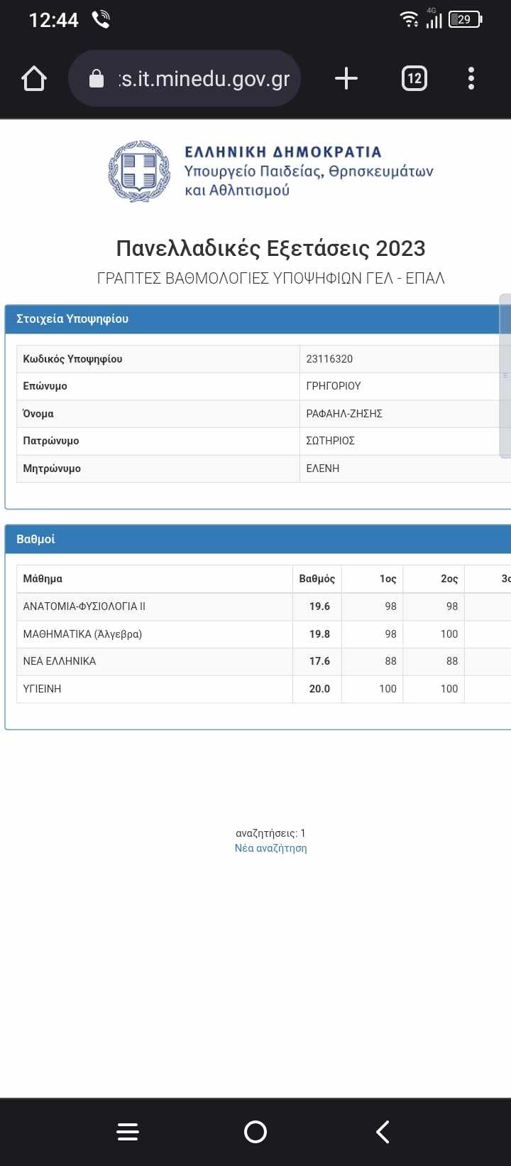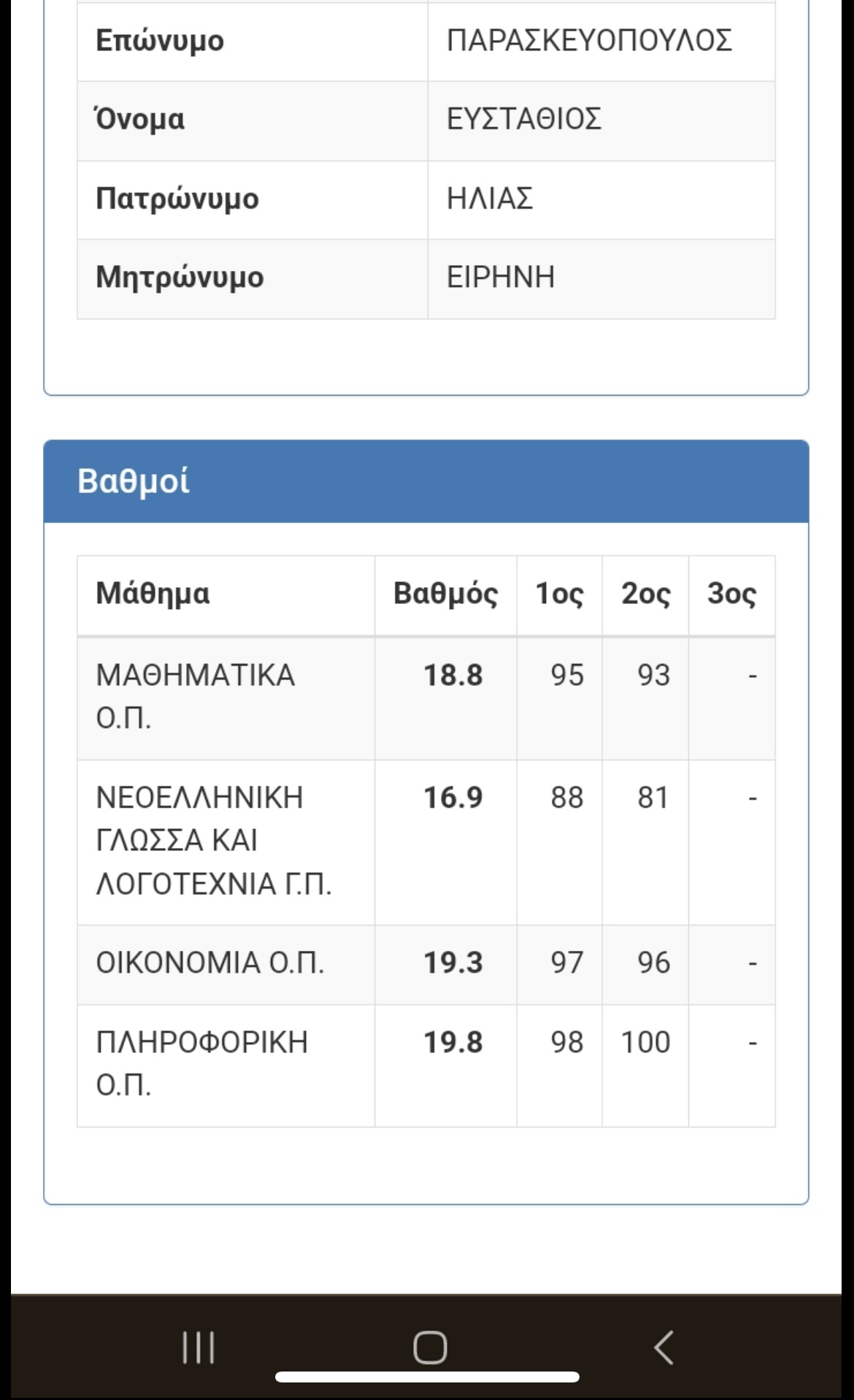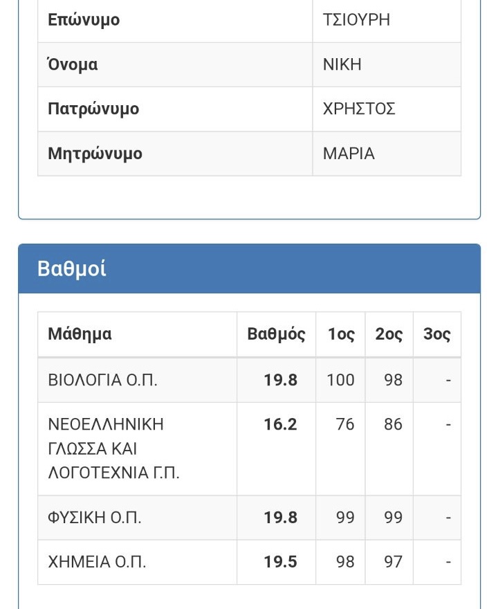 Ακομα να πιστέψω τους βαθμούς μου ,κυρίως της Έκθεσης καθώς όλη την χρόνια ημουν μεταξύ 15-16!!!”