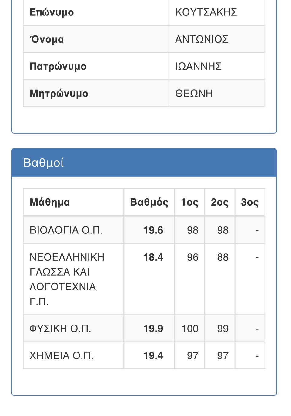 Ο μαθητής του ΓΕΛ Ιτέας-Φωκίδος αρίστευσε στην κατεύθυνση Θετικών Επιστημών με βαθμούς :