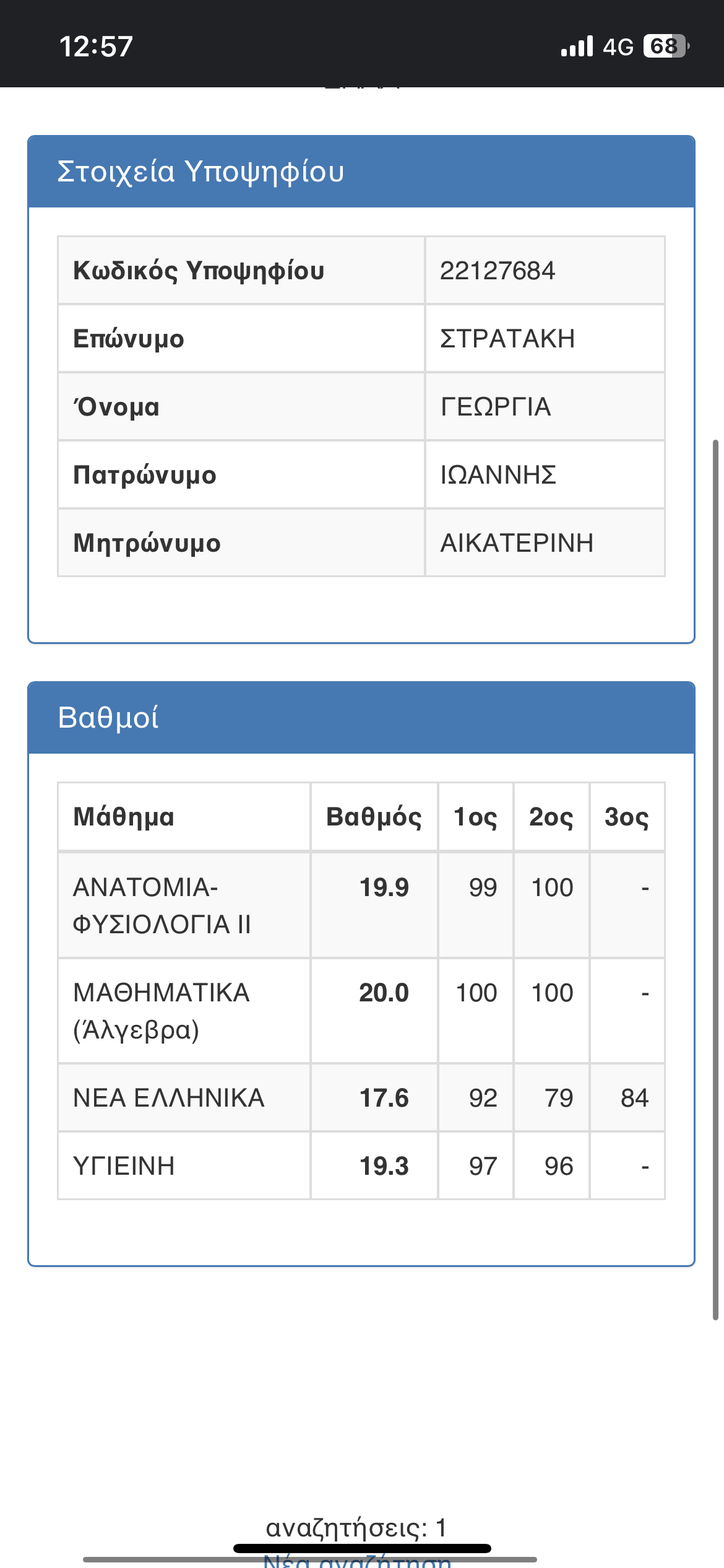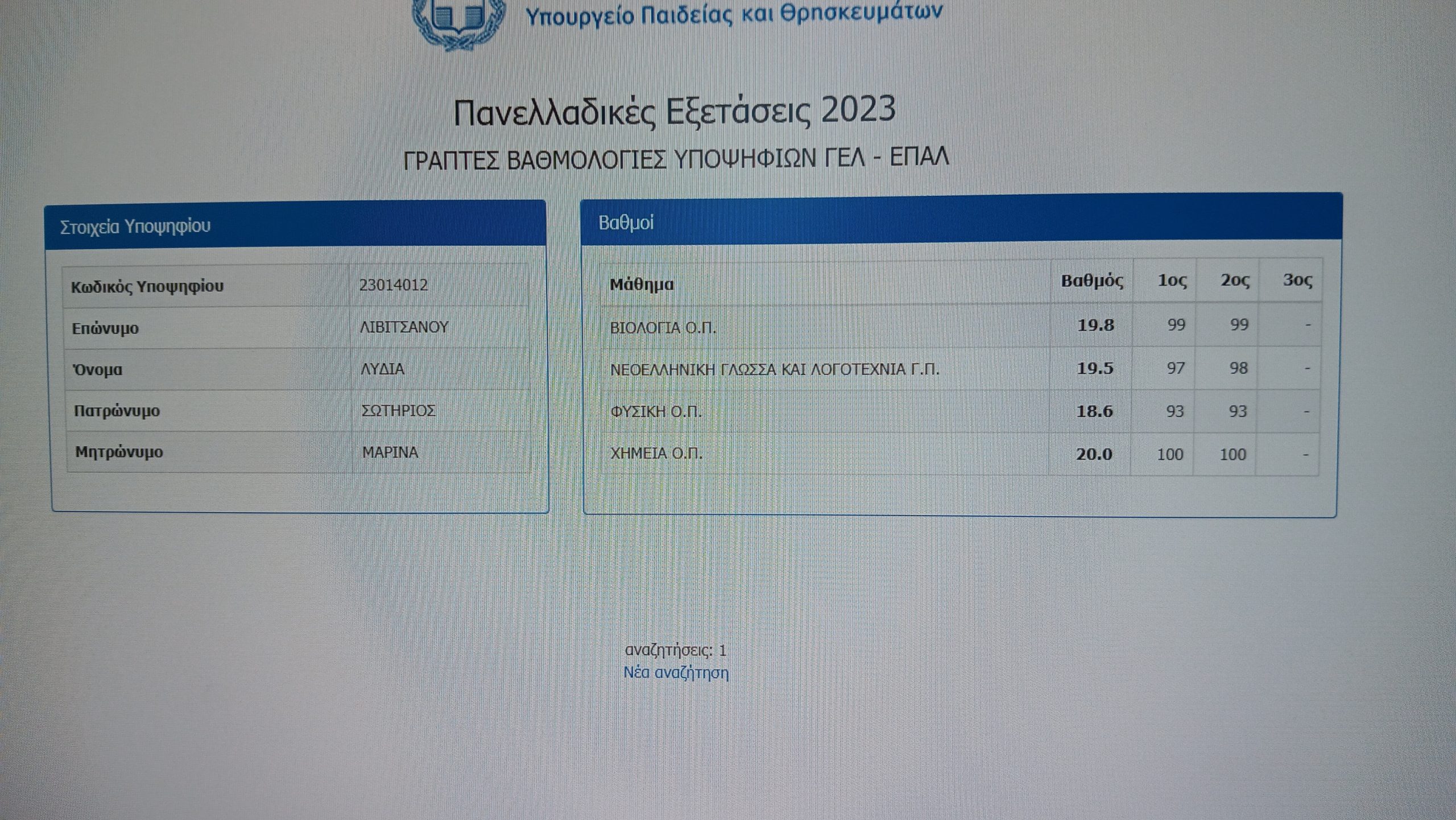 Η μαθήτρια του 1ου ΓΕΛ Νέας Ιωνίας Αττικής μετά από τεράστια προσπάθεια από μέρους της με οργανωτικό διάβασμα, συνέπεια κ αισιοδοξία κατάφερε να συγκεντρώσει 18,400 μόρια.