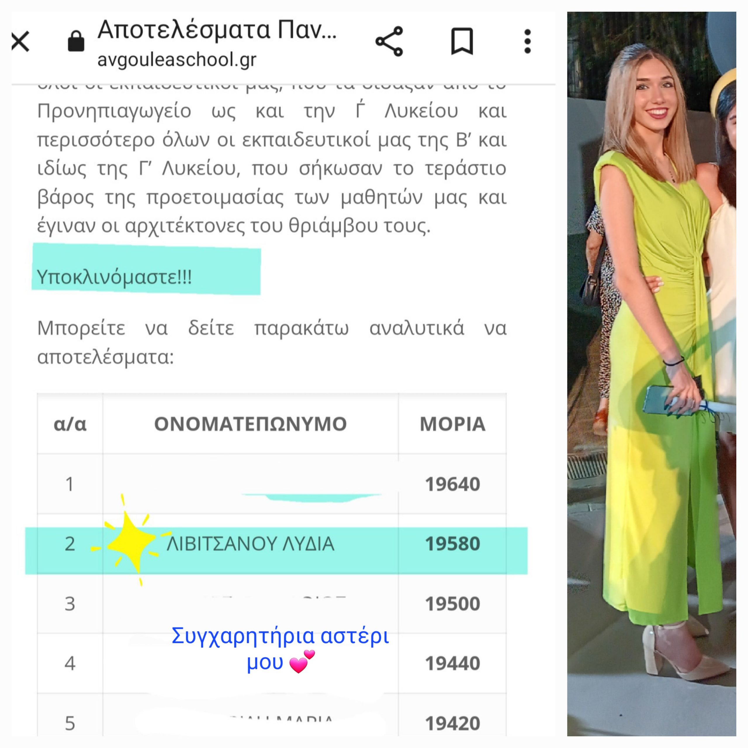 Η Λυδία Λιβιτσάνου από το Περιστέρι υπότροφος στα Εκπαιδευτήρια Αυγουλέα συγκέντρωσε 19.580 μόρια και ετοιμάζεται για την Ιατρική Αθηνών.
