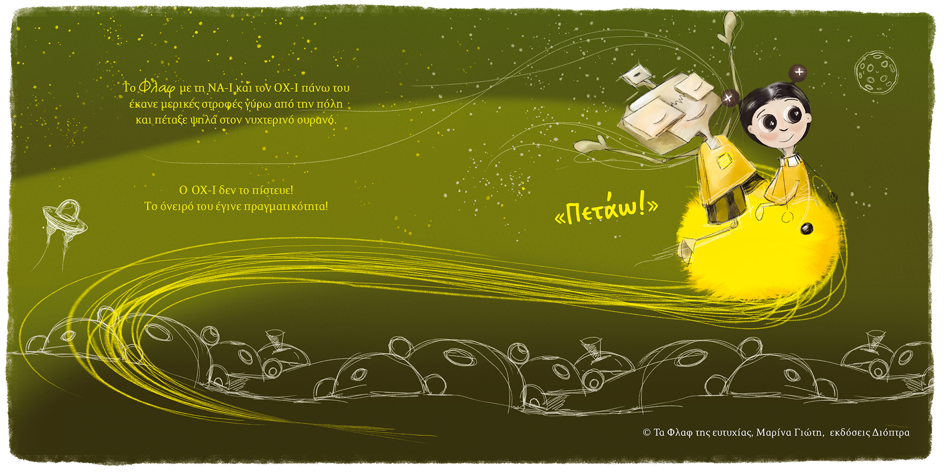 Κάπως έτσι ξετυλίγεται το κουβάρι της αφήγησης με πρωταγωνιστή τον ΟΧ-Ι, έναν μικρό εξωγήινο που ζει σε έναν πλανήτη στην άκρη του ηλιακού μας συστήματος και έχει ένα όνειρο: Να πιάσει ένα από τα λαμπερά Φλαφ που φωτίζουν τον ουρανό του πλανήτη του για να νιώσει πραγματική ευτυχία. Ώσπου μια μέρα το όνειρό του γίνεται πραγματικότητα!
