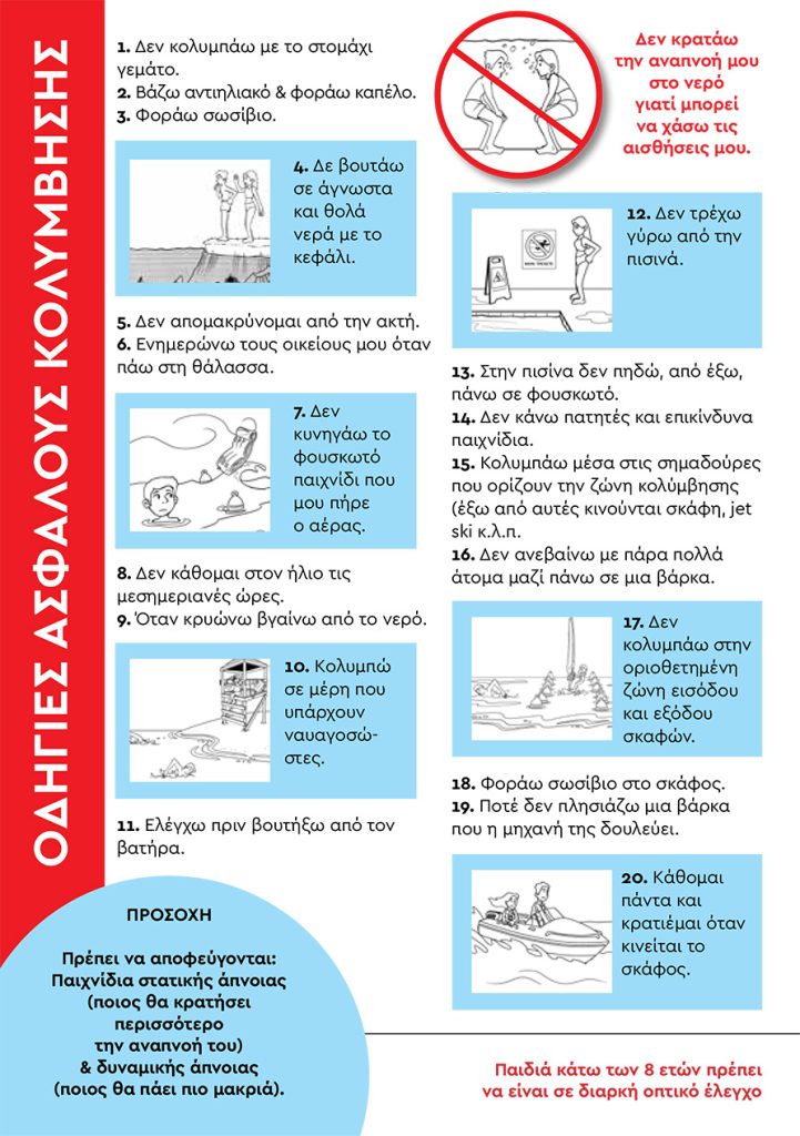 Mέχρι να επανέλθουμε ως Infokids με ένα πραγματικά σημαντικό ενημερωτικό σεμινάριο για γονείς σχετικά με την ασφάλεια στο νερό, παραθέτουμε εδώ πρακτικές συμβουλές που μπορούν να μας βοηθήσουν όλοι, μικρούς και μεγάλους, να απολαμβάνουμε το κολύμπι με ασφάλεια.