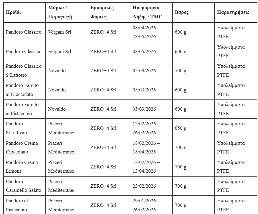 Όπως είχε επισημανθεί σε προηγούμενη ενημέρωση του Cibum, η αρχική ανάκληση αφορούσε δημοφιλές χριστουγεννιάτικο γλυκό, έπειτα από τη διαπίστωση ότι η αντικολλητική επικάλυψη PTFE των καλουπιών ψησίματος παρουσίαζε φθορά. Το παντόρο αποτελεί ένα από τα πιο διαδεδομένα γλυκά της εορταστικής περιόδου, άμεσα συνδεδεμένο με την οικογενειακή κατανάλωση, γεγονός που καθιστά το ζήτημα ιδιαίτερα σοβαρό.