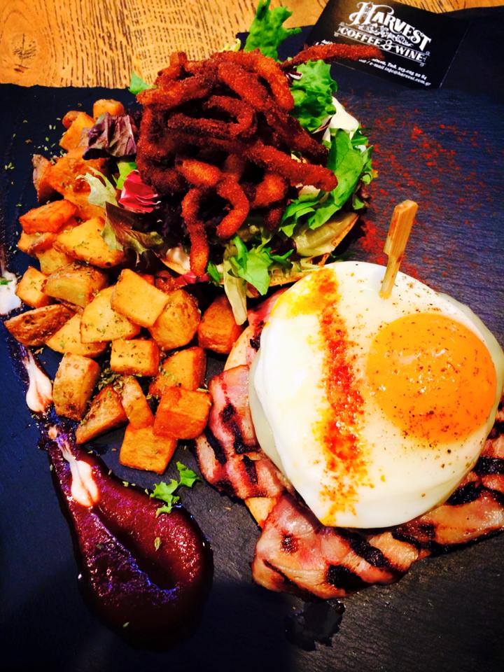 Ανάμεσα στα πιο φημισμένα πιάτα του Harvest είναι το Huevo de corral, το κυριακάτικο σπιτικό αυγό της Μαδρίτης σερβιρισμένο πάνω σε φρεσκοψημένο ψωμί brioche με σωτέ πράσο, μανιτάρια, jamon και κρέμα βουτύρου με άρωμα λευκής τρούφας. Αν και πολλές φορές προσπάθησαν αρκετοί να το αντιγραψουν, κάνοντας έστω μια μικρή παραλλαγή, το πιάτο σερβίρεται στο Harvest από την πρώτη μέρα της λειτουργίας του! Το Huevo Vasco – τηγανιτό αυγό, χωριάτικο λουκάνικο και καραμελωμένα κρεμμύδια, σερβιρισμένο πάνω σε φρεσκοψημένο ψωμί brioche – είναι επίσης μία από τις πιο δημοφιλείς επιλογές, το Harvest Special Burger, τα Benedict με καπνιστή πανσέτα ή καπνιστό σολομό και φυσικά τα pancakes που δεν λείπουν ποτέ από κανένα τραπέζι!