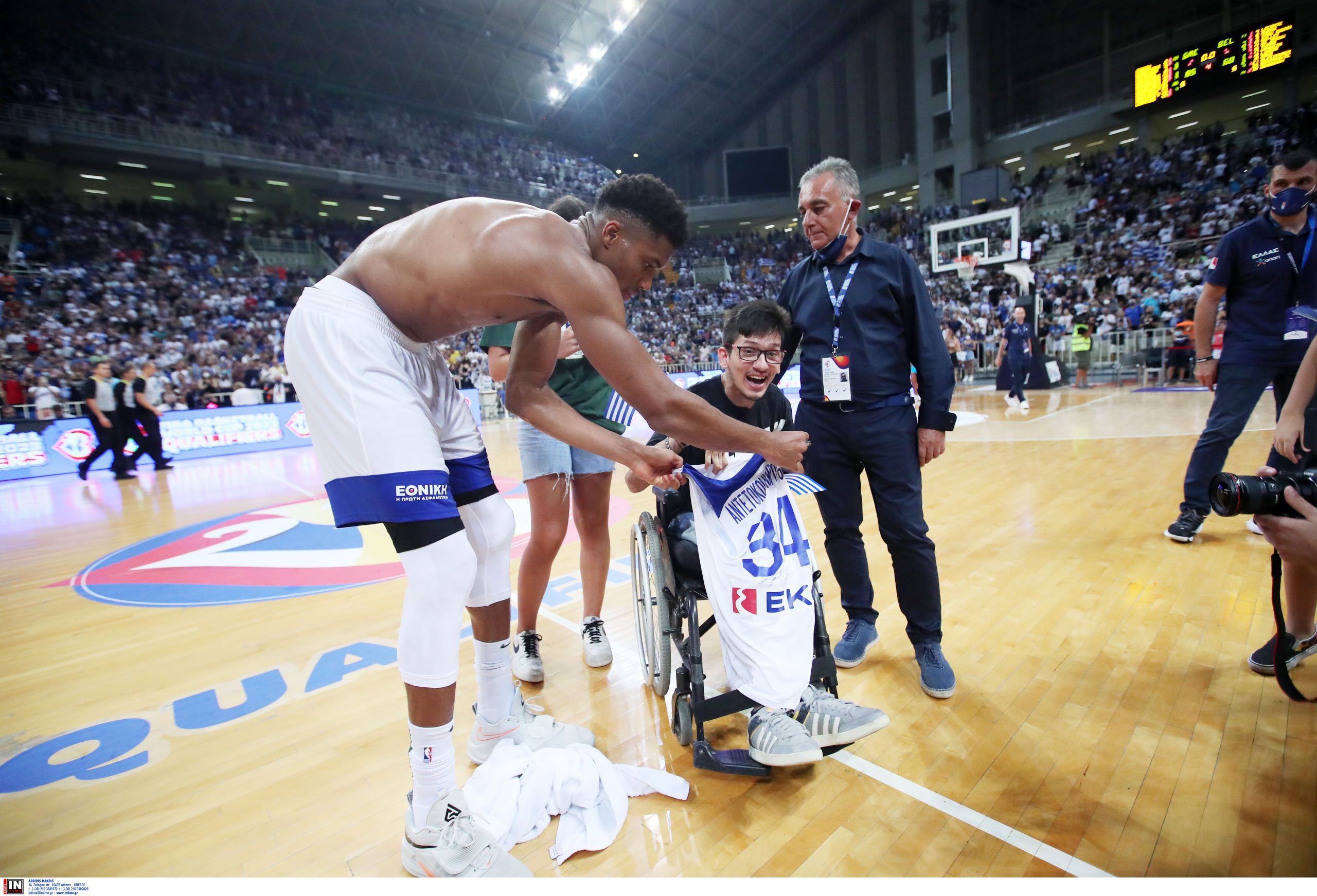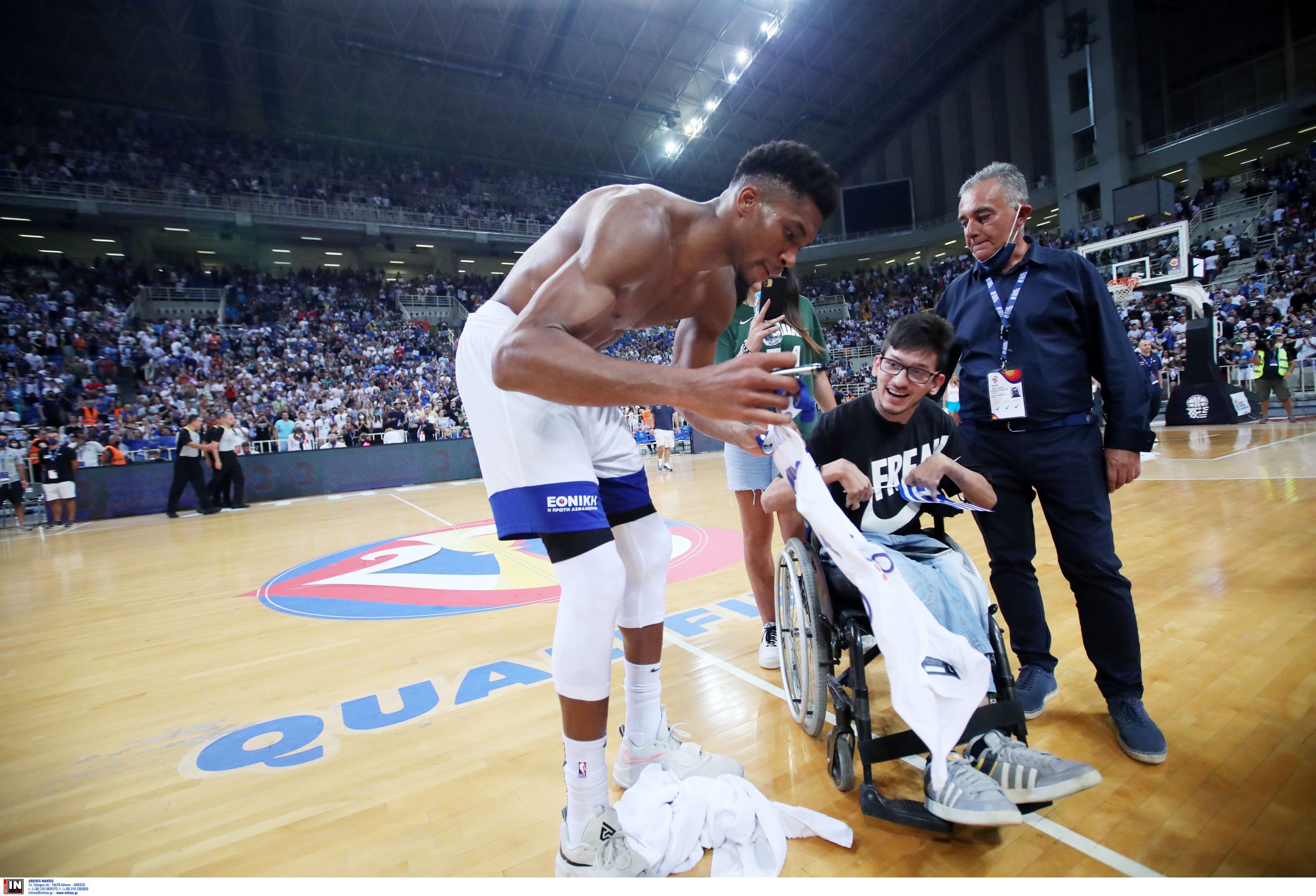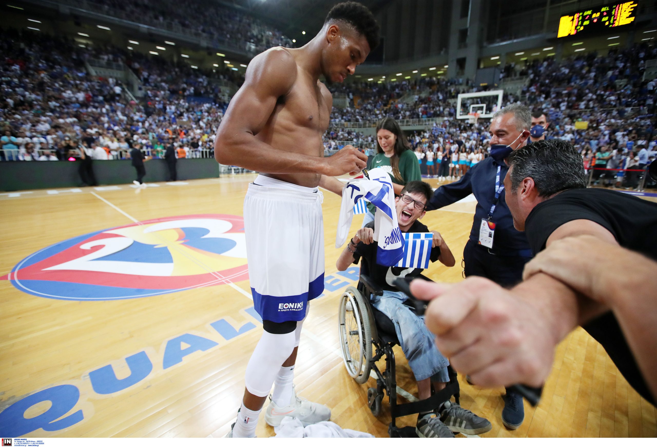 Κορυφαίος σε ένα ακόμη ματς ήταν ο Γιάννης Αντετοκούνμπο με 26 πόντους, που δευτερόλεπτα μετά τη νίκη της Εθνικής ομάδας μπάσκετ επί του Βελγίου στο ΟΑΚΑ κι ενώ ο κόσμος δε σταμάτησε να τον αποθεώνει, έβγαλε την φανέλα του, την υπέγραψε και στη συνέχεια την έδωσε σε παιδί – φίλαθλο της «γαλανόλευκης» με κινητικά προβλήματα.