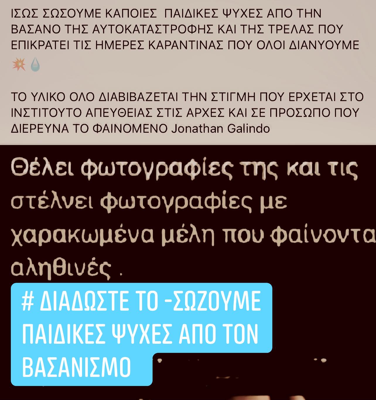 Η Άννα Βήχου μητέρα ενός παιδιού σε επικοινωνία που είχε με το Infokids.gr ανέφερε ότι το παιχνίδι αυτοκτονίας Jonathan Galindo είναι όντως αληθινό και πράγματι έχουν υποπέσει στην αντίληψή της περιστατικά που δείχνουν ότι υπάρχει διείσδυση αυτής της καριτούρας που ζητά από τα παιδιά να προβούν σε ακραίες πράξεις σε ελληνικούς λογαριασμούς παιδιών σε δημοφιλή μέσα κοινωνικής δικτύωσης.