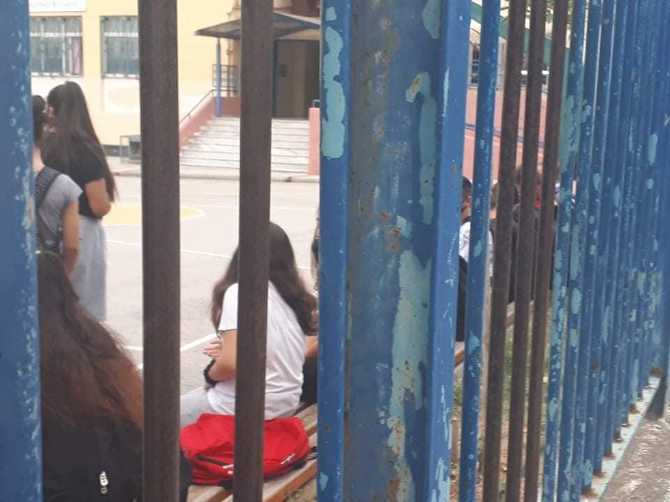 Όπως καταγγέλλουν οι γονείς, όταν ο καιρός είναι καλός, οι μαθητές κάνουν μάθημα στην αυλή, ενώ όταν βρέχει το μάθημα πραγματοποιείται στις εσωτερικές σκάλες του σχολείου.