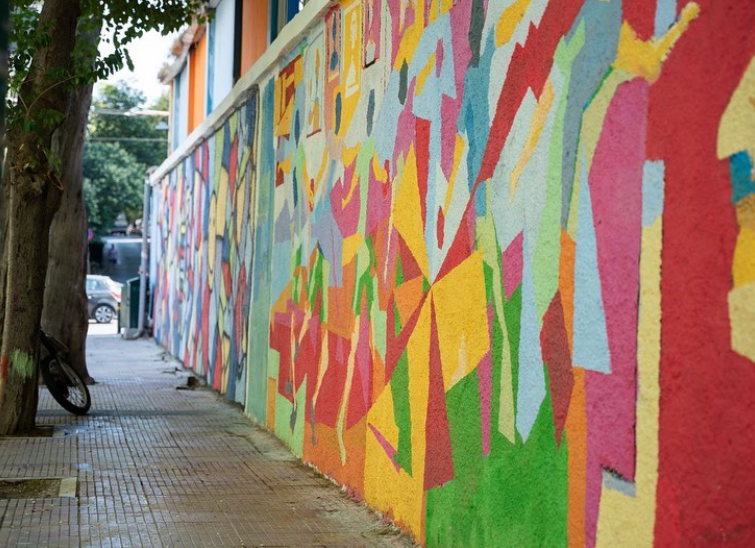 Περιμετρικά του Πανελληνίου, οι τοίχοι επί των οδών Μαυρομματαίων και Ευελπίδων, απέκτησαν χρώμα και ζωντάνια.