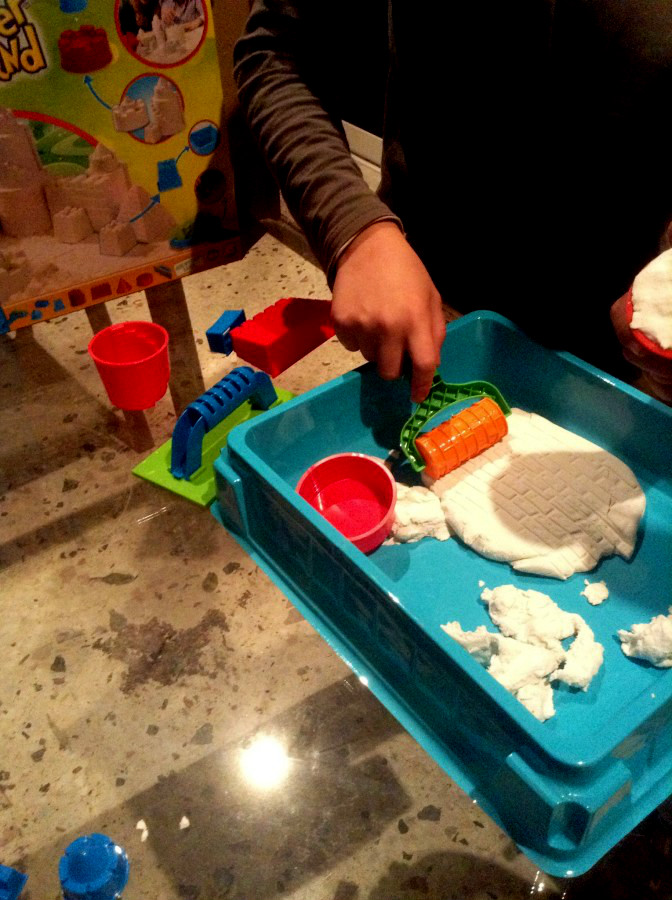 Mαζί τους έγινα και εγώ ξανά παιδί για λίγο και ομολόγω ότι μου άρεσε πολύ. Τα 900 γρ. άμμου εσωτερικής χρήσης Super Sand, τα καλουπάκια για να φτιάξουν τα παιδιά τον πύργο και το κάστρο τους και τα εργαλεία που περιείχε η συσκευασία για να”στρωθεί” και να πάρει σχήμα η άμμος πριν την κατασκευή μας χάρισαν ένα γεμάτο δίωρο παιχνιδιού και διασκέδασης.