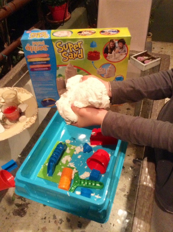 Πρώτα απ’ όλα είναι μοναδικό στο είδος του και είμαι σίγουρη ότι κάτι αντίστοιχο δεν έχετε ξανασυναντήσει σε καταστήματα παιχνιδιών. Ξεχάστε όλα όσα ξέρατε για την κλασική άμμο παραλίας αφού η άμμος Super Sand είναι ένα καινοτόμο υλικό, πολύ απλή στη χρήση, ιδαίτερα εύπλαστη, δεν στεγνώνει, δεν σκορπίζεται και δεν θρυμματίζεται. Για να μην αναφερθώ στη μη τοξική της σύσταση που αποτρέπει την ανάπτυξη βακτηρίων και την καθιστά καλύτερη επιλογή από την κοινή θαλασσινή άμμο που σε πολλές περιπτώσεις έχει κατηγορηθεί για μολύνσεις και μυκητιάσεις στο ευαίσθητο παιδικό δερματάκι.