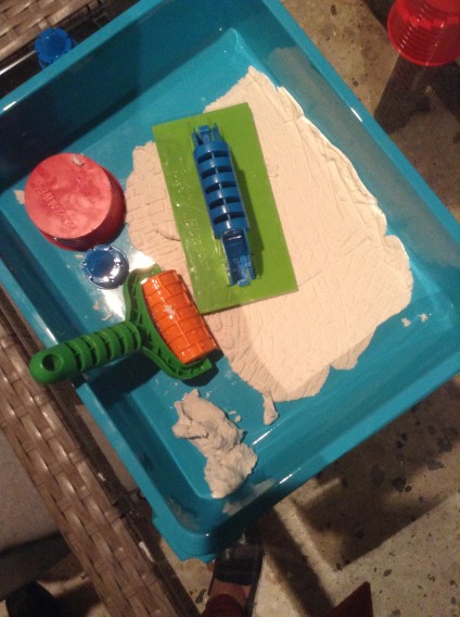 Όπως καταλαβαίνετε τα πιτσιρίκια σε χρόνο ρεκόρ έκαναν τα μαθήματά τους οπότε δεν ήθελα να τους χαλάσω το χατίρι και δέχθηκα να κάνουμε κάστρα και πύργους στην βεράντα του σπιτιού με την άμμο Super Sand. O 12χρονος Βασίλης και ο 11χρονος Δημήτρης ενθουσιάστηκαν. Τηρήσαμε κατά γράμμα τις οδηγίες χρήσης και πριν βιαστούν να ορμήξουν στην άμμο: Πλύναμε τα χέρια μας, ανοίξαμε προσεκτικά τη συσκευασία με την άμμο, την ξεχωρίσαμε με τα χέρια μας και την αφήσαμε για λίγο να αναπνεύσει. Και φυσικά δεν ξεχάσαμε να έχουμε κατά νου, ότι δεν πρέπει να την αναμειγνύουμε με νερό.