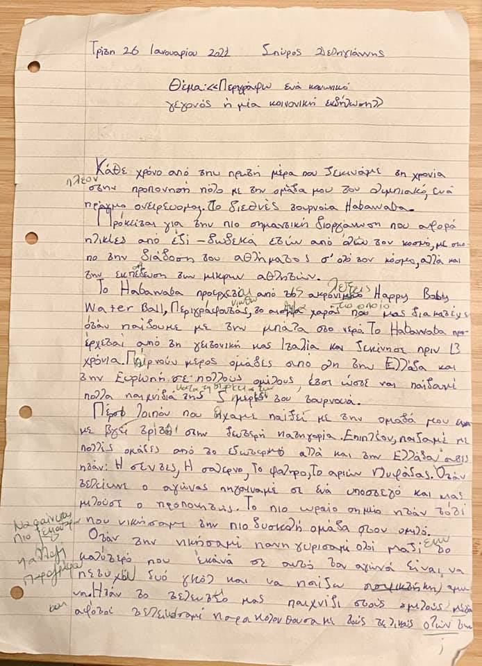 H εκθεση του 11 χρονου Σπύρου, αθλητή του πόλο