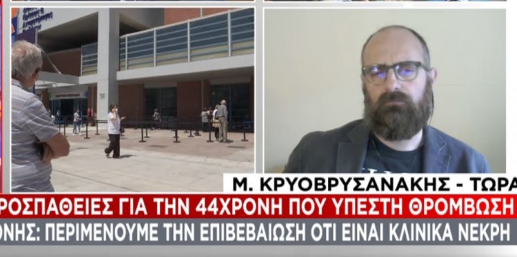 «Περιμένουμε την επιβεβαίωση ότι είναι κλινικά νεκρή για να διακόψουμε τις λειτουργίες λόγω του ότι τώρα είναι διασωληνωμένη», είπε μιλώντας στον ΣΚΑΙ ο Μανώλης Κρυοβρυσανάκης, σύζυγος της 44χρονης γυναίκας Γλυκερίας η οποία νοσηλεύεται στο νοσοκομείο Κρήτης, μετά από επεισόδιο θρόμβωσης.