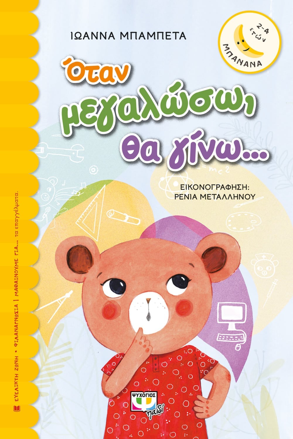 Η Ιωάννα Μπαμπέτα στο νέο της βιβλίο καταπιάνεται με ένα ζήτημα που απασχολεί συχνά τα μικρά παιδιά και δεν είναι άλλο από το…τι θα γίνουν όταν μεγαλώσουν. Ακούγοντας τα επαγγέλματα γνωστών και συγγενών, ενθουσιάζονται, θέλουν να τους μοιάσουν και με την πρώτη ευκαιρία θέλουν να μοιραστούν περήφανα τα όνειρά τους. Όμως υπάρχουν και ορισμένα παιδιά όπως η Αρκουδίτσα, η Μυρτώ που δεν ξέρουν ακόμη τι θέλουν να κάνουν όταν γίνουν μεγάλα και τρανά. Πώς πρέπει να αντιμετωπίσουμε μια τέτοια κατάσταση; Διαβάστε για την ιστορία εδώ