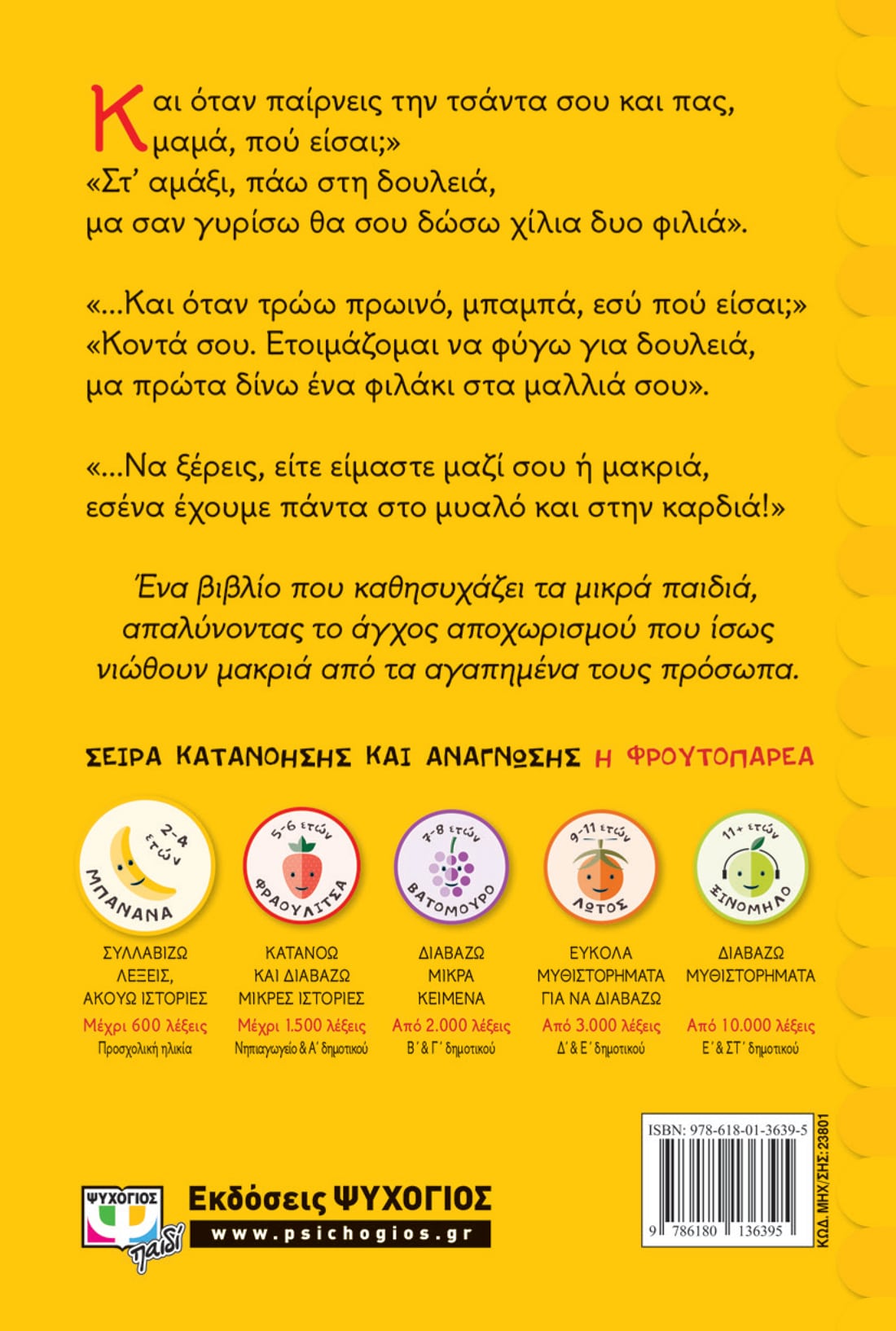 Οι εκδόσεις Ψυχογιός που δίνουν έμφαση στο καλό παιδικό βιβλίο που “μιλά” στην καρδιά του λιλιπούτειου αναγνώστη έχουν δημιουργήσει τη “Φρουτοπαρέα”, μια μοναδική στο είδος της σειρά παιδικών ιστοριών που απευθύνονται σε παιδιά προσχολικής ηλικίας μέχρι να φτάσουν και το τέλος του Δημοτικού.