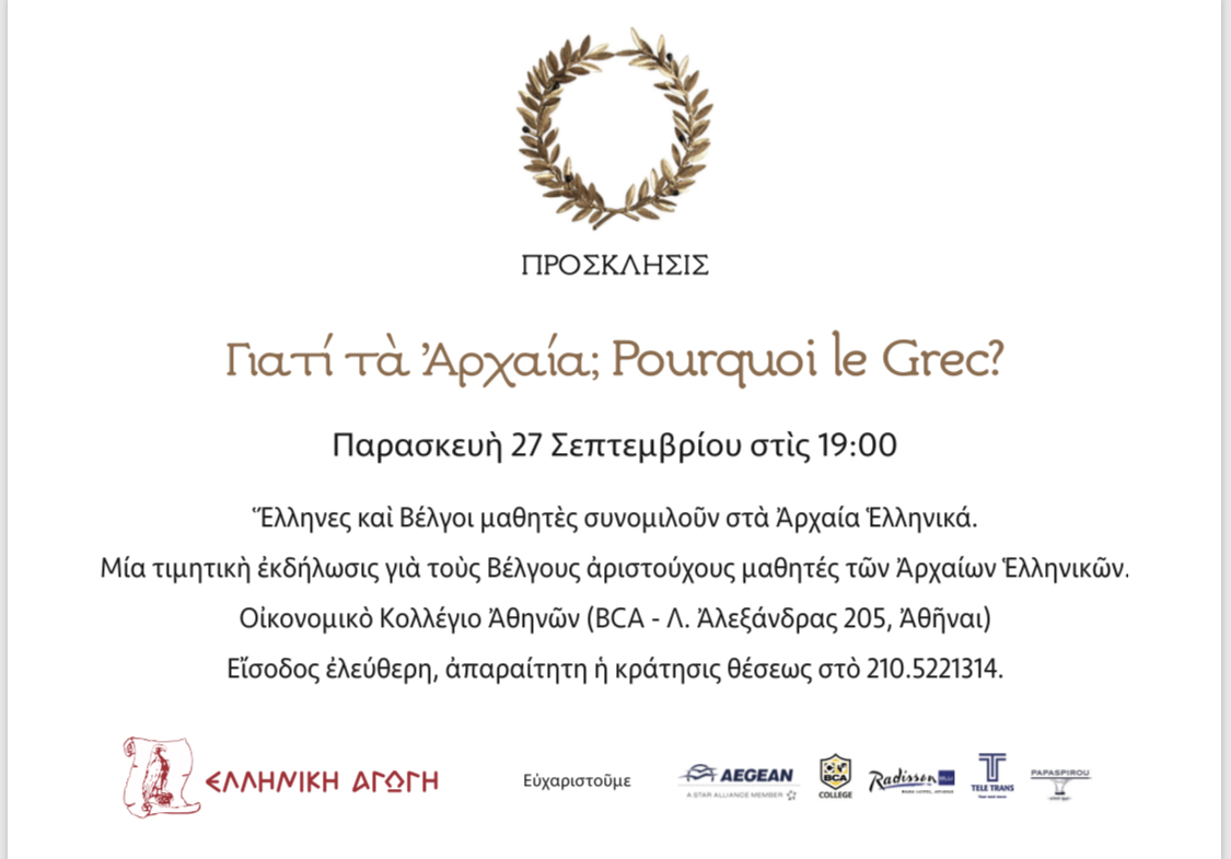 Εκδήλωση βράβευσης 10 Βέλγων μαθητών που αρίστευσαν στα αρχαία ελληνικά (27/9)