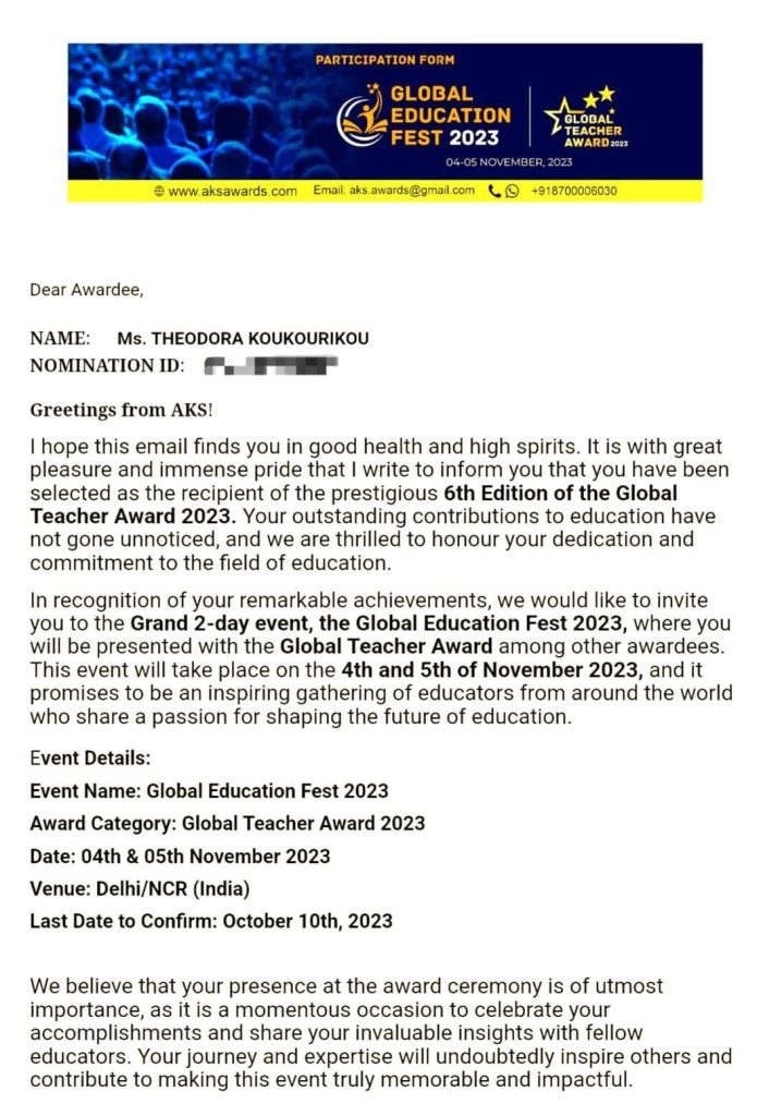 -Τι ήταν αυτό που σας ξεχώρισε ανάμεσα σε εκατοντάδες χιλιάδες συμμετοχές από όλο τον κόσμο και κερδίσατε το «Global Teacher Award»;