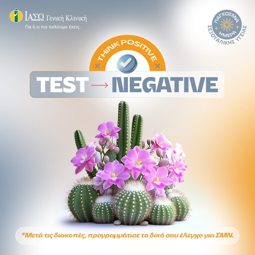 Το ΙΑΣΩ Γενική Κλινική, με αφορμή την Παγκόσμια Ημέρα Σεξουαλικής Υγείας (4 Σεπτεμβρίου), με το μήνυμα “Think positive. Test negative”, τονίζει την σπουδαιότητα της προστασίας και της πρόληψης για την διατήρηση της σεξουαλικής υγείας. Η πλέον σύγχρονη παγκοσμίως μέθοδος ανίχνευσης ΣΜΝ είναι η PCR, με ασύγκριτα μεγαλύτερη διαγνωστική ακρίβεια, από τις κλασικές παραδοσιακές καλλιέργειες.