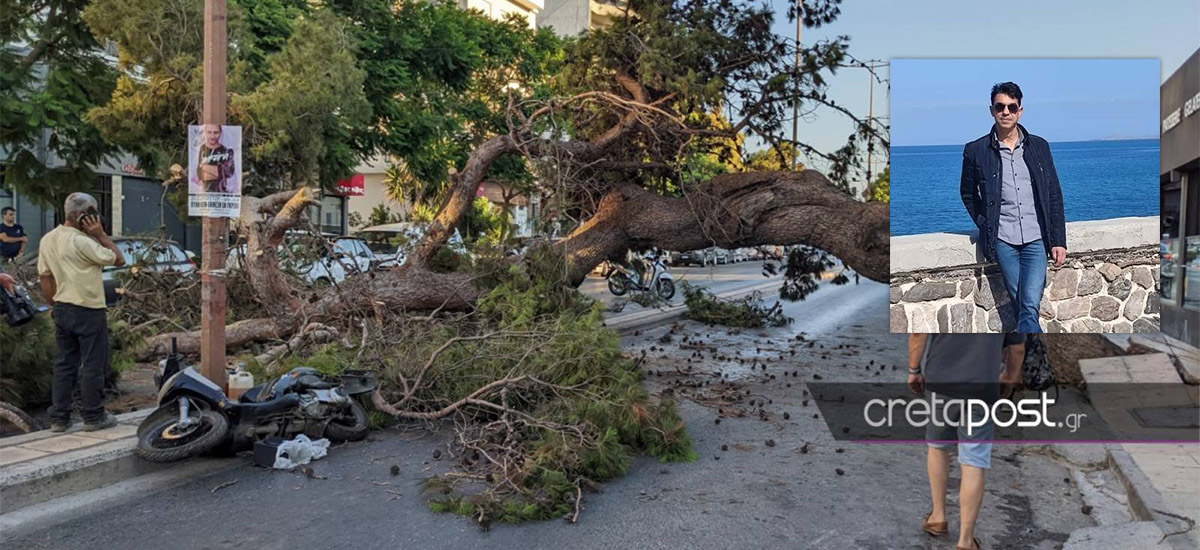 Ανείπωτος πόνος, αλλά και οργή έχει προκαλέσει στην τοπική κοινωνία της Κρήτης ο άδικος τρόπος με τον οποίο έχασε την ζωή του χθες το απόγευμα ένας 51χρονος μοτοσικλετιστής, όταν καταπλακώθηκε από δέντρο στα φανάρια κεντρικού δρόμου του Ηρακλείου.