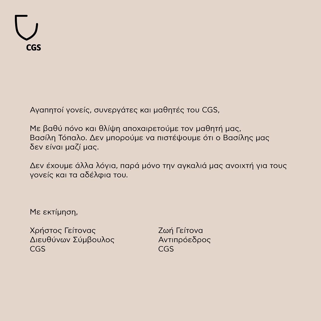 Ραγίζει καρδιές το “αντίο” των καθηγητών και των συμμαθητών του από τα Εκπαιδευτήρια Κωστέα Γείτονα που φοιτούσε.
