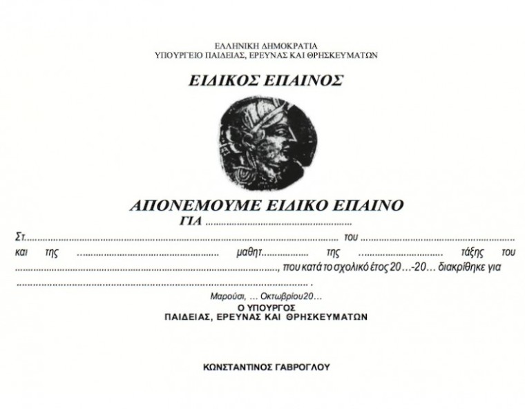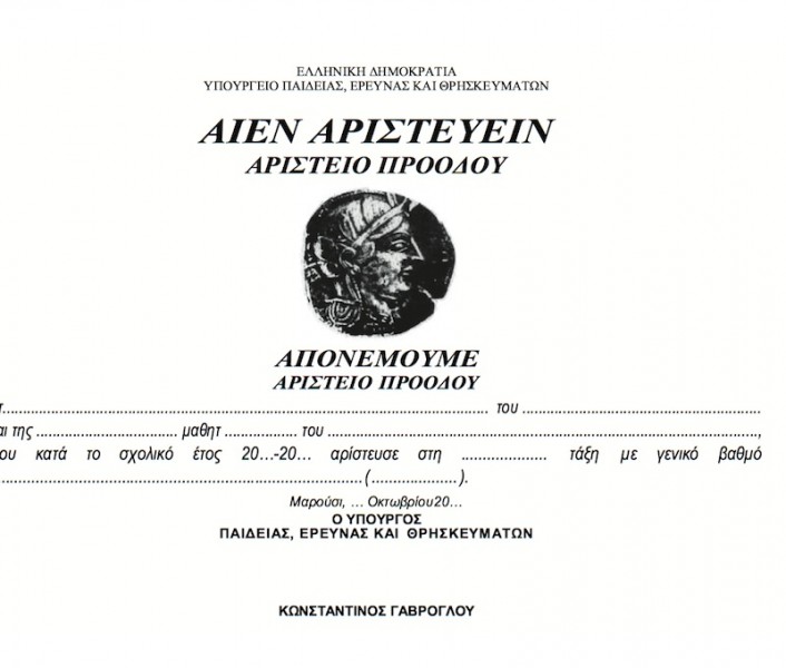 Μια νέα μορφή αριστείας θα απονέμεται εφεξής στους μαθητές Γυμνασίων και Λυκείων σύμφωνα με σχετική υπουργική απόφαση του κ. Κώστα Γαβρόγλου. Μέχρι σήμερα ξέραμε τα Αριστεία Προόδου για τους αριστούχους μαθητές που επιτυγχάνουν βαθμό ετήσιας προόδου “άριστα” και τα Βραβεία Προόδου για τους μαθητές που επιτυγχάνουν τον μεγαλύτερο βαθμό ετήσιας προόδου και διαγωγή “εξαιρετική.