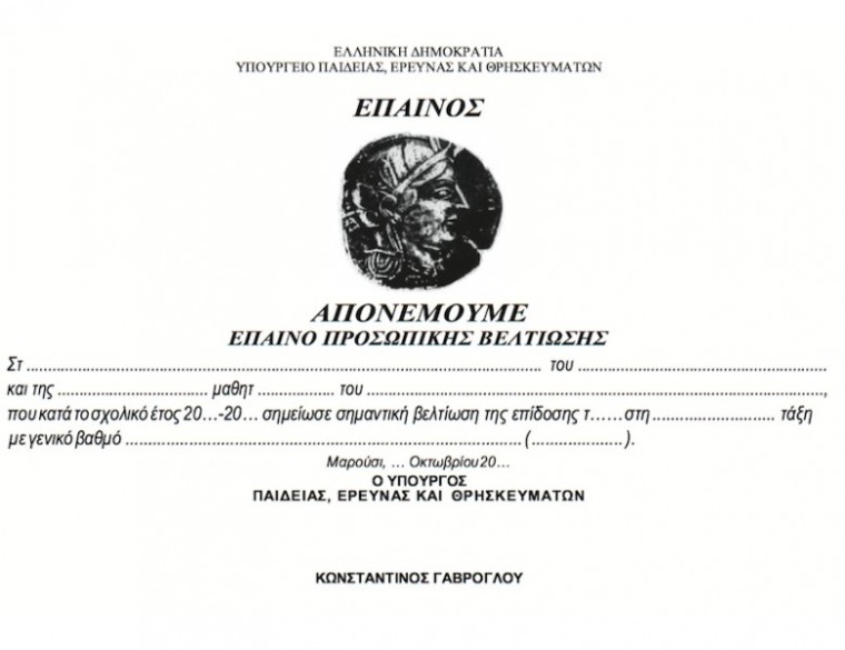 Από φέτος όμως, εισάγεται και ο θεσμός του “Επαίνου Προσωπικής Βελτίωσης” που θα απονέμεται σε μαθητές που έχουν σημειώσει σημαντική βελτίωση της επίδοσης τους μετά από απόφαση του Συλλόγου Διδασκόντων/ουσών κατά την παιδαγωγική συνεδρίαση των αποτελεσμάτων στο τέλος του διδακτικού έτους. Με τον τρόπο αυτό επιβραβεύεται και η προσπάθεια μαθητών οι οποίοι δεν συγκέντρωσαν κατ’ ανάγκην υψηλή βαθμολογία, κατάφεραν όμως να σημειώσουν σημαντική βελτίωση της συνολικής επίδοσής τους