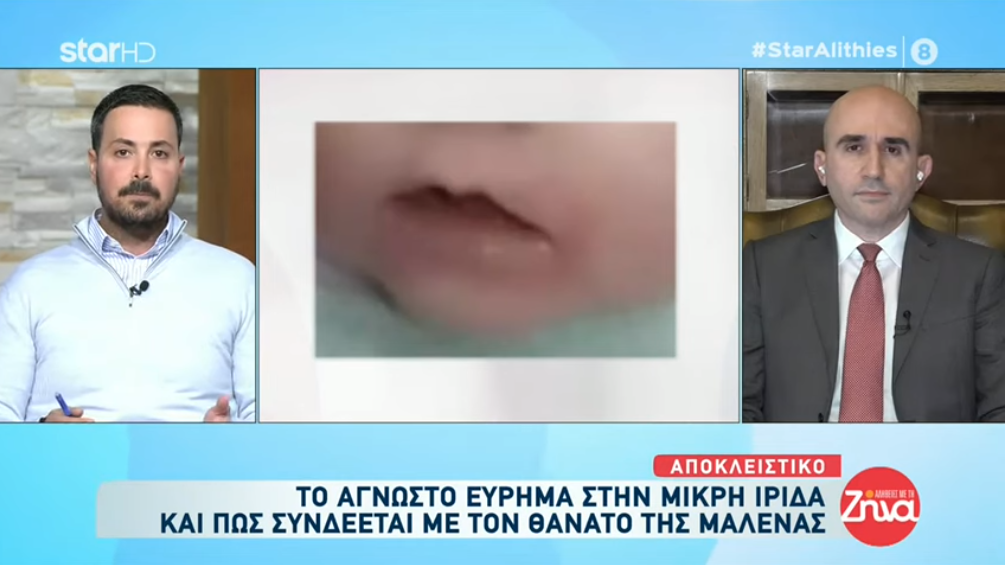 Εκείνο το οποίο όμως δεν ήταν γνωστό είναι το γεγονός ότι επίσης παρατηρήθηκε και «μικρή λύση της συνέχειας του στοματικού βλεννογόνου άνευ έτερων χαρακτηριστικών». Σύμφωνα με ειδικούς, το συγκεκριμένο εύρημα, δηλαδή η μικρή αμυχή στο εσωτερικό του στόματος της Ίριδας, έχει εξαιρετικά μεγάλη σημασία, διότι ενδεχομένως, όπως χαρακτηριστικά σχολίαζαν στην «Μ», να σχετίζεται και με βίαιη απόφραξη των έξω στομίων των αεροφόρων οδών, αλλά κυρίως (όπως αποκαλύψαμε την περασμένη Κυριακή) η Μαλένα (το κοριτσάκι των 3,5 ετών που κατέληξε στις 13 Απριλίου 2019 μέσα στο «Παίδων) είχε ανάλογα ευρήματα!