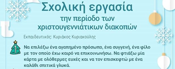 Ο λόγος για την καλύτερη σχολική εργασία που μπορεί να βάλει ένας δάσκαλος για τα Χριστούγεννα, έπειτα από ένα τρίμηνο αρκετά κουραστικό για τα παιδιά.