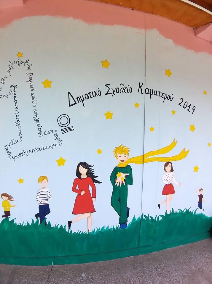 Με χαρά και ενθουσιασμό λάβαμε γνώση για την υπέροχη δουλειά που έχει κάνει ο Σύλλογος Γονέων και Κηδεμόνων του 1ου Δημοτικού Σχολείου Καματερού καθώς με όρεξη, φαντασία και μεράκι μεταμόρφωσαν την γκρίζα όψη του σχολείου σε ένα παράδεισο με χρώματα, επιδαπέδια παιχνίδια και εικόνες που κάνουν τους μαθητές να ανυπομονούν να βρεθούν στα θρανία.