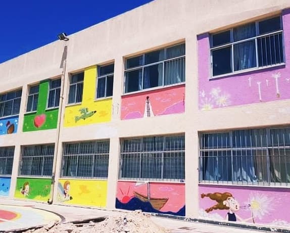 Κόντρα στο μαύρο, το γκρι και το φόβο του ιού, οι γονείς θέλησαν να “ντύσουν” με χρώμα τους τοίχους του σχολείου και να φτιάξουν μια πολύχρωμη πολιτεία που θα κάνει το ταξίδι της γνώσης των παιδιών μια ευχάριστη εμπειρία και συνάμα θα κάνει ακόμα ομορφότερη τη γειτονιά πέριξ του σχολείου.