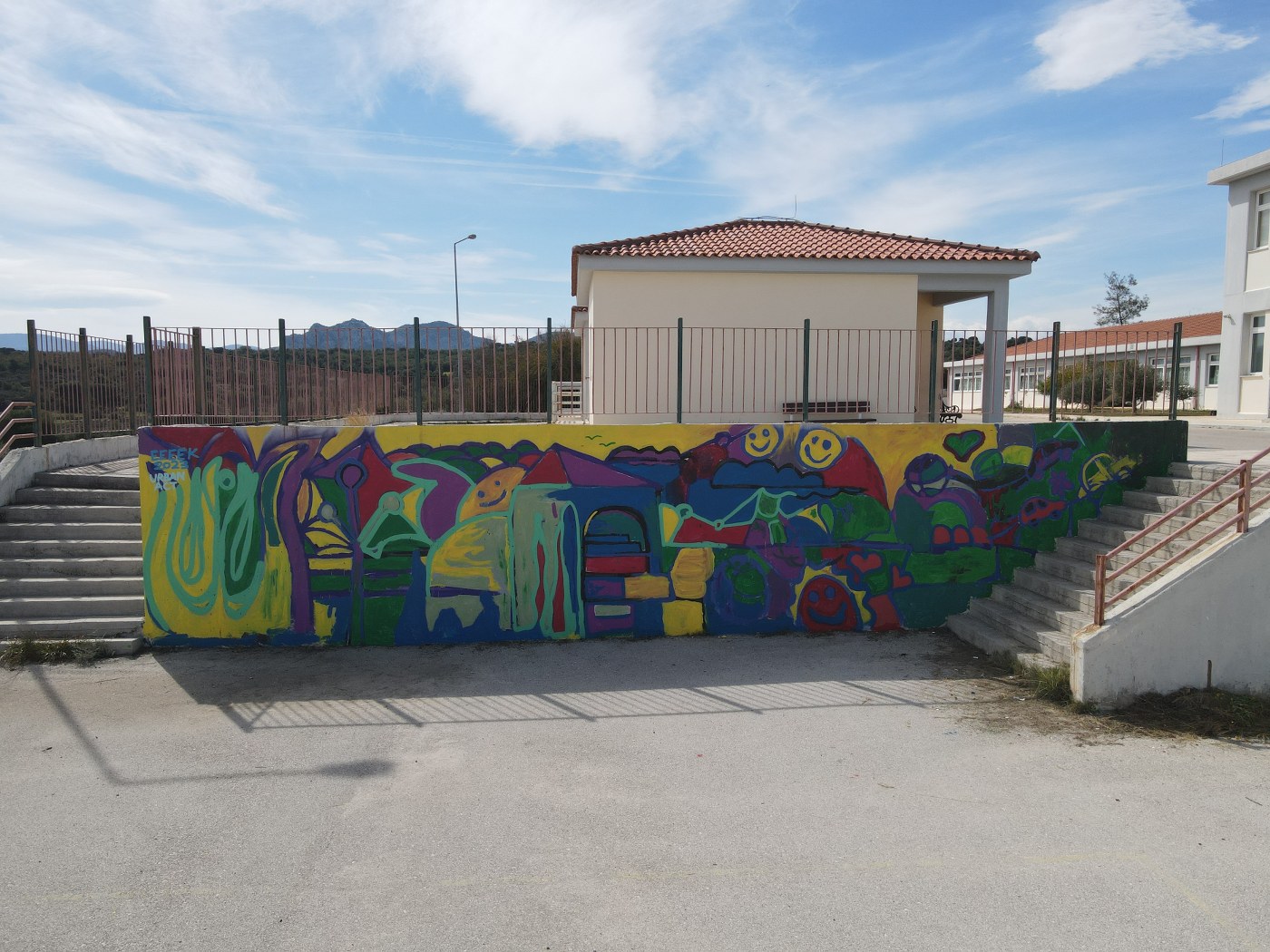Η δράση έλαβε χώρα από τις 9 – 15 Μαρτίου στο πλαίσιο του προγράμματος της UrbanAct “Ζωγραφίζοντας Σχολικά Κτίρια”, όπου ο καλλιτέχνης Kez με τη συμμετοχή των μαθητών/τριών του εργαστηρίου μετέτρεψαν το σχολικό περιβάλλον σε έναν πολύχρωμο καμβά παραπέμποντας σε ένα φυσικό τοπίο γεμάτο έντονα χρώματα.