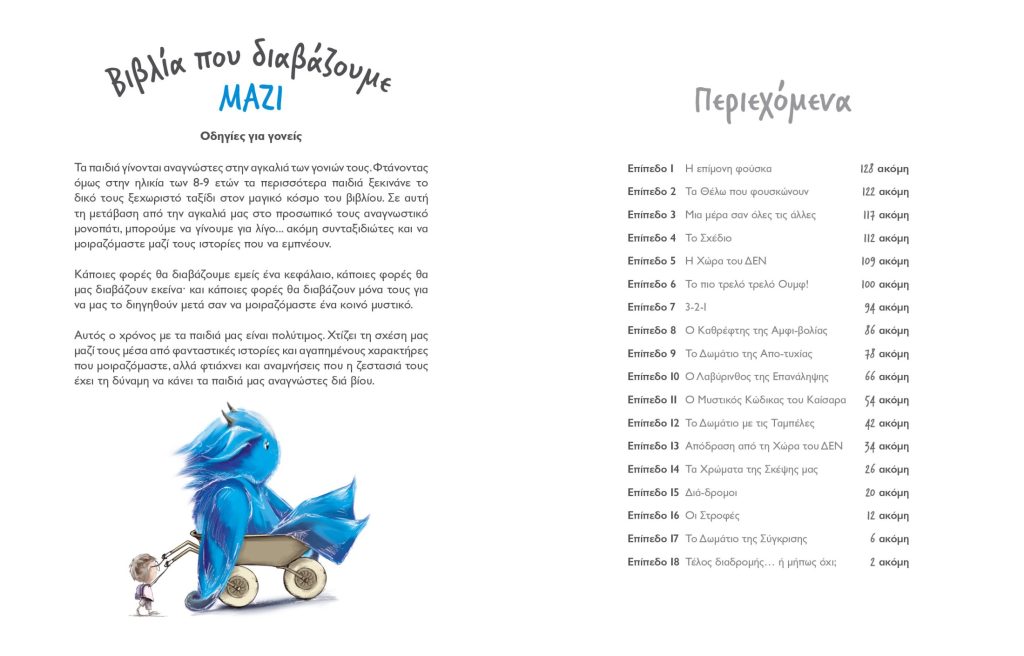 Πώς λειτουργεί αυτό; Όλοι γνωρίζουμε ότι τα παιδιά γίνονται αναγνώστες στην αγκαλιά των γονιών τους. Φτάνοντας όμως στην ηλικία των 8-9 ετών τα περισσότερα παιδιά ξεκινάνε το δικό τους ξεχωριστό ταξίδι στον μαγικό κόσμο του βιβλίου. Σε αυτή τη μετάβαση από την αγκαλιά μας στο προσωπικό τους αναγνωστικό μονοπάτι, μπορούμε να γίνουμε… ακόμη συνταξιδιώτες και να μοιραζόμαστε μαζί τους ιστορίες που να εμπνέουν. Κάποιες φορές θα διαβάζουμε εμείς ένα κεφάλαιο, κάποιες φορές θα μας διαβάζουν εκείνα και κάποιες φορές θα διαβάζουν μόνα τους για να μας το διηγηθούν μετά σαν να μοιραζόμαστε ένα κοινό μυστικό. Είναι σαν να πηγαίνουμε να δούμε μια ταινία. Άλλο πράγμα να πηγαίνεις μόνος σου και άλλο πράγμα να πηγαίνετε μαζί. Έχετε κάτι μετά να συζητήσετε! Και αν κάτι προκύψει στην καθημερινότητα… Έχετε κοινές προσλαμβάνουσες, κοινό τόπο. Αυτός ο χρόνος με τα παιδιά μας είναι πολύτιμος. Χτίζει τη σχέση μας μαζί τους μέσα από φανταστικές ιστορίες και αγαπημένους χαρακτήρες που μοιραζόμαστε, αλλά φτιάχνει και αναμνήσεις που η ζεστασιά τους έχει τη δύναμη να κάνει τα παιδιά μας αναγνώστες διά βίου.