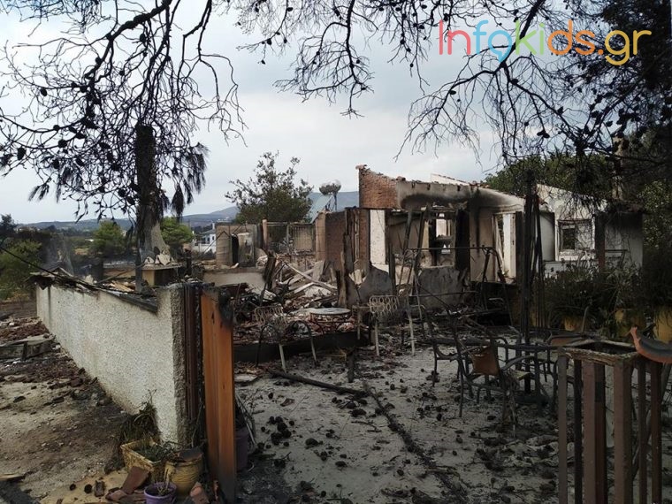 Σπίτια καμμένα, κουφάρια αυτοκινήτων πλήρως καταστραμμένα και περιουσίες παραδομένες στη στάχτη. Οι πυροσβέστες σε κάθε σημείο δίνουν και τη τελευταία ρανίδα της ενέργειάς τους για να μην ξαναφουντώσει ο εφιάλτης. Μας κρατούν σε απόσταση ασφαλείας.