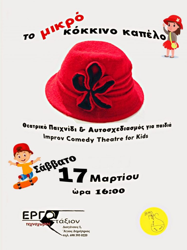 Μέσα από ιστορίες που φτιάχνουν παιδιά και ηθοποιοί μαζί, με «το μικρό κόκκινο καπέλο» εξελίσσεται σε μια πετυχημένη, γεμάτη φαντασία κι απολαυστικό χιούμορ παράσταση.