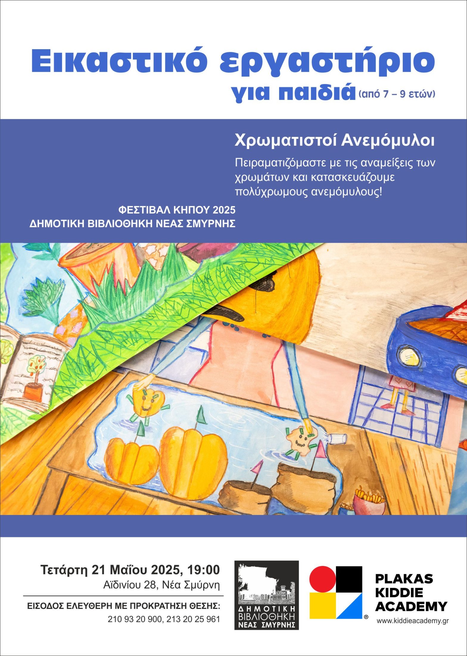 Η παιδική ακαδημία του Κέντρου Τεχνών Πλάκα, Plakas Kiddie Academy συμμετέχει για πρώτη φορά στο Φεστιβάλ Κήπου 2025 της Δημοτικής Βιβλιοθήκης Νέας Σμύρνης με δωρεάν εικαστικό εργαστήριο στις 21 Μαΐου 2025 και ώρα 19:00, για παιδιά από 7 έως 9 ετών!