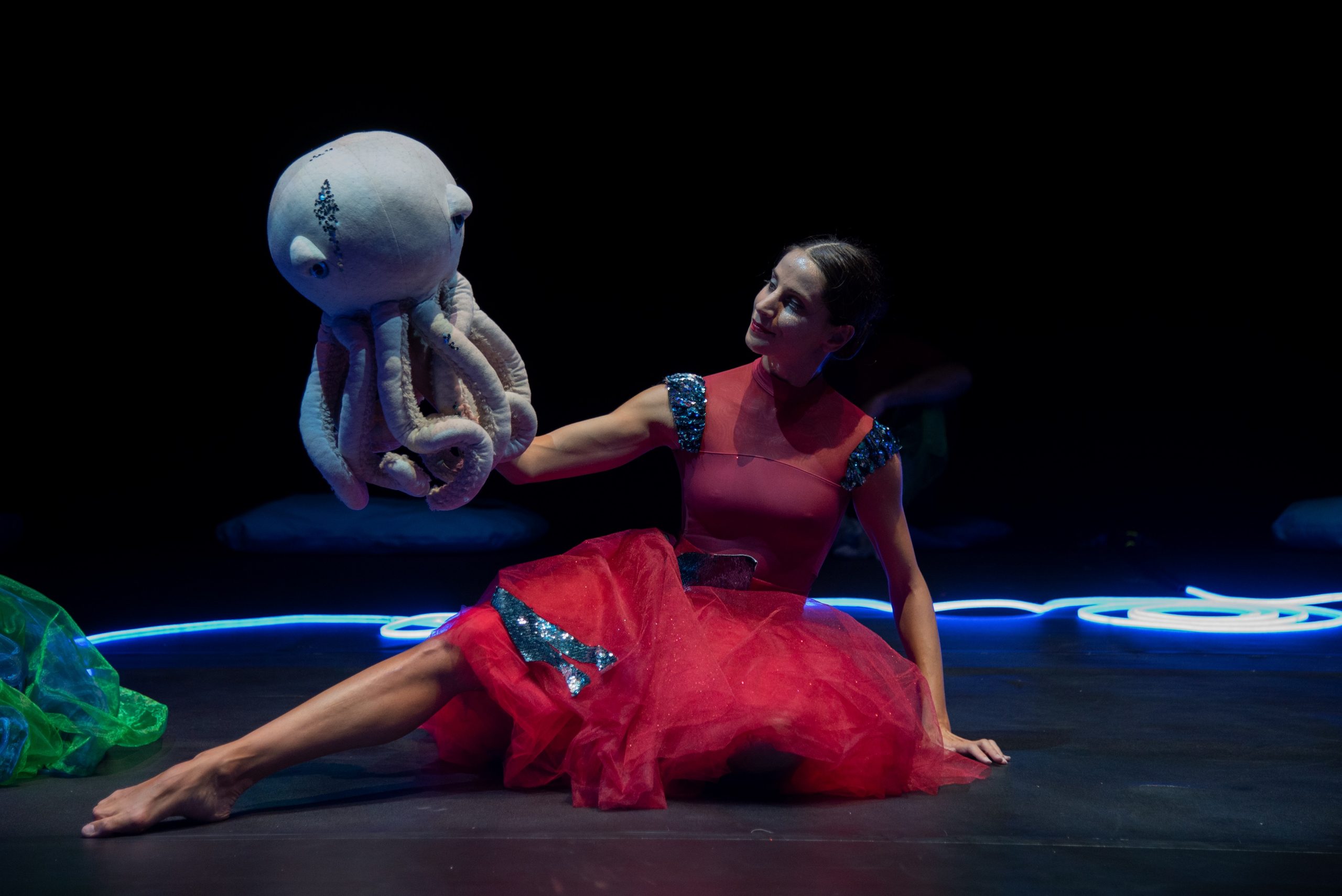Η παράσταση Underwater ζωντανεύει με ζωηρό τρόπο το ταξίδι μιας μπαλαρίνας καθώς ξυπνά από έναν ύπνο γεμάτο όνειρα και βρίσκεται στον ωκεανό, έναν καθησυχαστικό κόσμο γεμάτο γαλανά φώτα και μπουρμπουλήθρες. Καθώς εξερευνά το υπέροχο νέο της σπίτι, συναντά ένα χταπόδι – και οι δυο τους σύντομα σχηματίζουν μια φιλία γεμάτη αγάπη κάτω από τα κύματα, χορεύοντας ως ντουέτο με συνοδεία μιας μουσικής γεμάτης κουδουνίσματα, που περιλαμβάνει και μερικές γνώριμες μελωδίες…