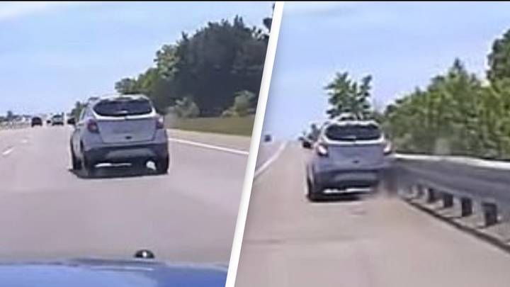 Στο βίντεο από την καταδίωξη που πραγματοποιήθηκε στις 27 Μαΐου, φαίνεται το SUV που έχει αναμμένα τα αλάρμ του να αλλάζει λωρίδες πριν τελικά να πέσει πάνω σε προστατευτική μπαριέρα και να ακινητοποιηθεί.