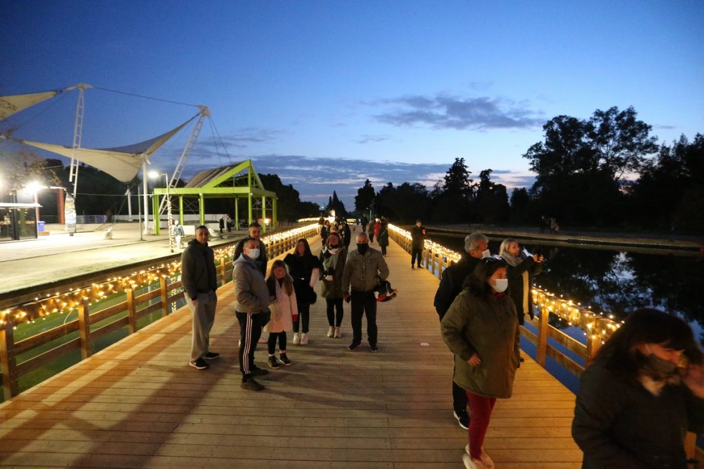 Ειδικότερα, κατά μήκος της κεντρικής διαδρομής και περιμετρικά των λιμνών, χάρη στον επιπρόσθετο εορταστικό φωτισμό αναδείχθηκαν οι δενδροστοιχίες και το υδάτινο στοιχείο και ταυτόχρονα ο επισκέπτης του χώρου έχει την ευκαιρία να περιηγηθεί στο πάρκο υπό την αντίστοιχη εορταστική μουσική υπόκρουση.